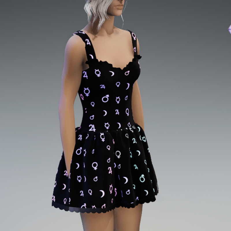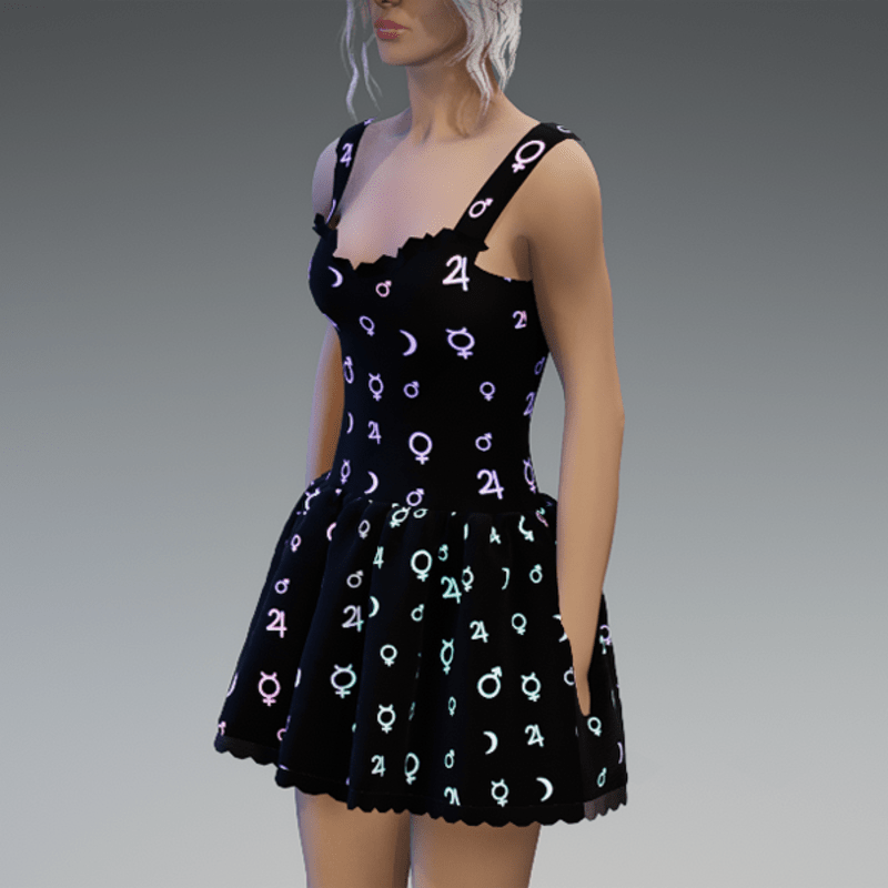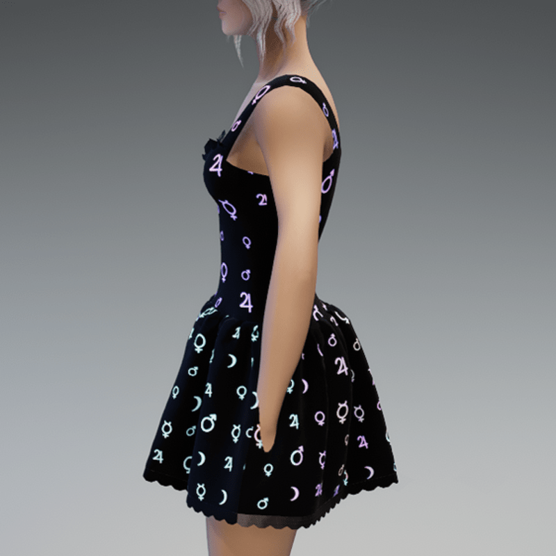 this dress comes with glowing planet signs of the moon, venus, mercury, mars and jupiter. Enjoy! <3