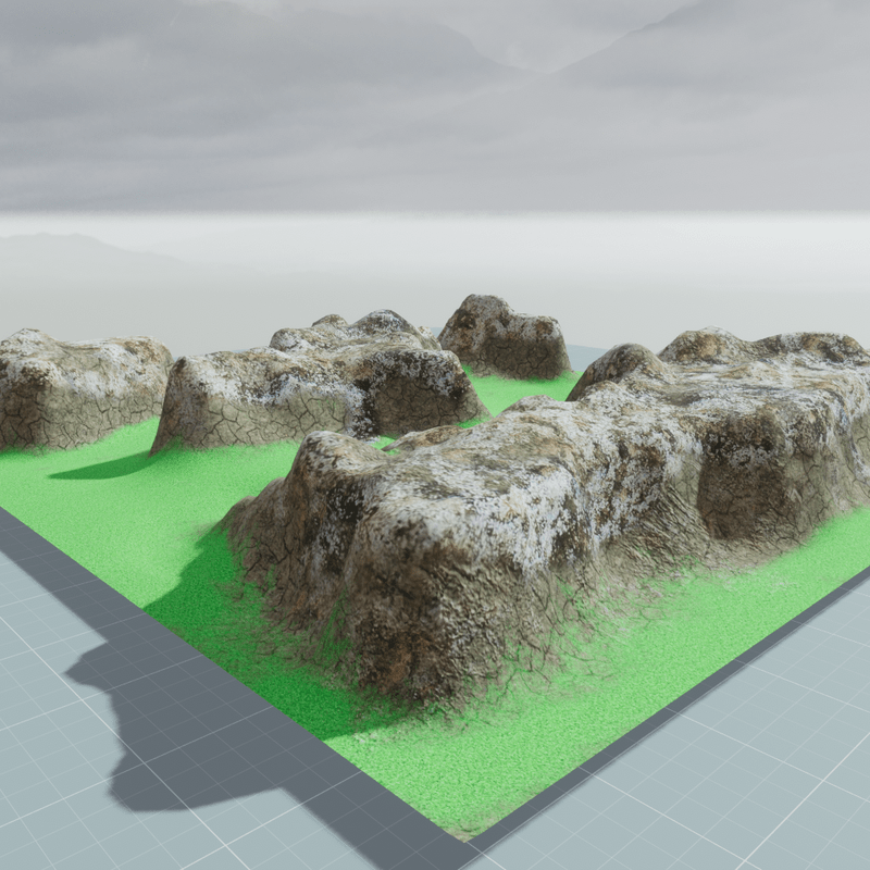 Green ground mountains landscape with cracked hillside with top rocks!