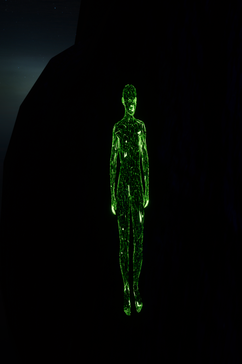 Glow in the dark mesh girl avatar in green, To see other items world visit my store https://atlas.sansar.com/experiences/timeymaster-3376/timey-master-s-store