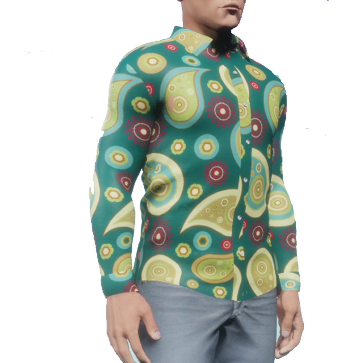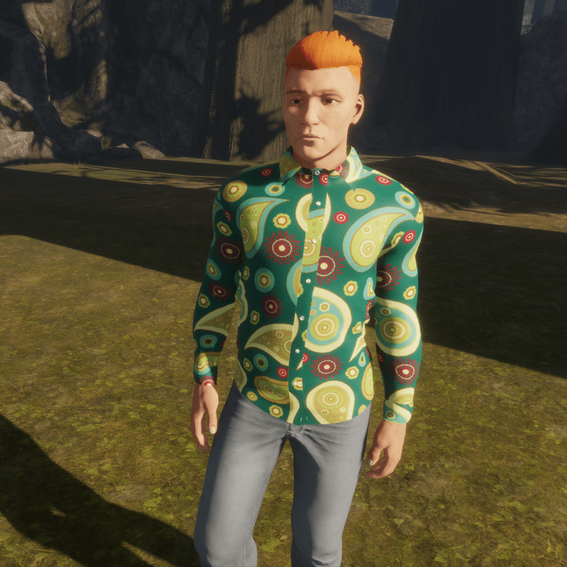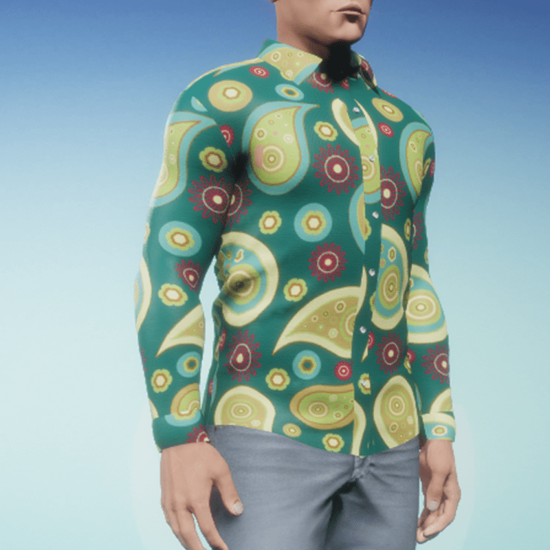 Stand out from the crowd in a stylish green patterned shirt. This is a virtual world, no need to be shy!