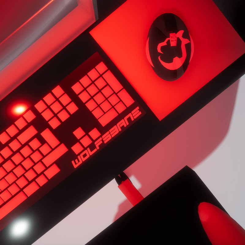 Want a powerful PC? The Ultra Wolfbane 3.500 is your match! Lots of detail. Comes with animated and emissive textures! See other pictures. Includes: -2 monitors -One tower with components -Mouse -Mouse pad -Keyboard -Desk -Gaming chair -Pillow -3 books -Sculpture of a bunny -Trashcan -Lighting effects, emissive You can change the textures, colours and you can resize. ENJOY!