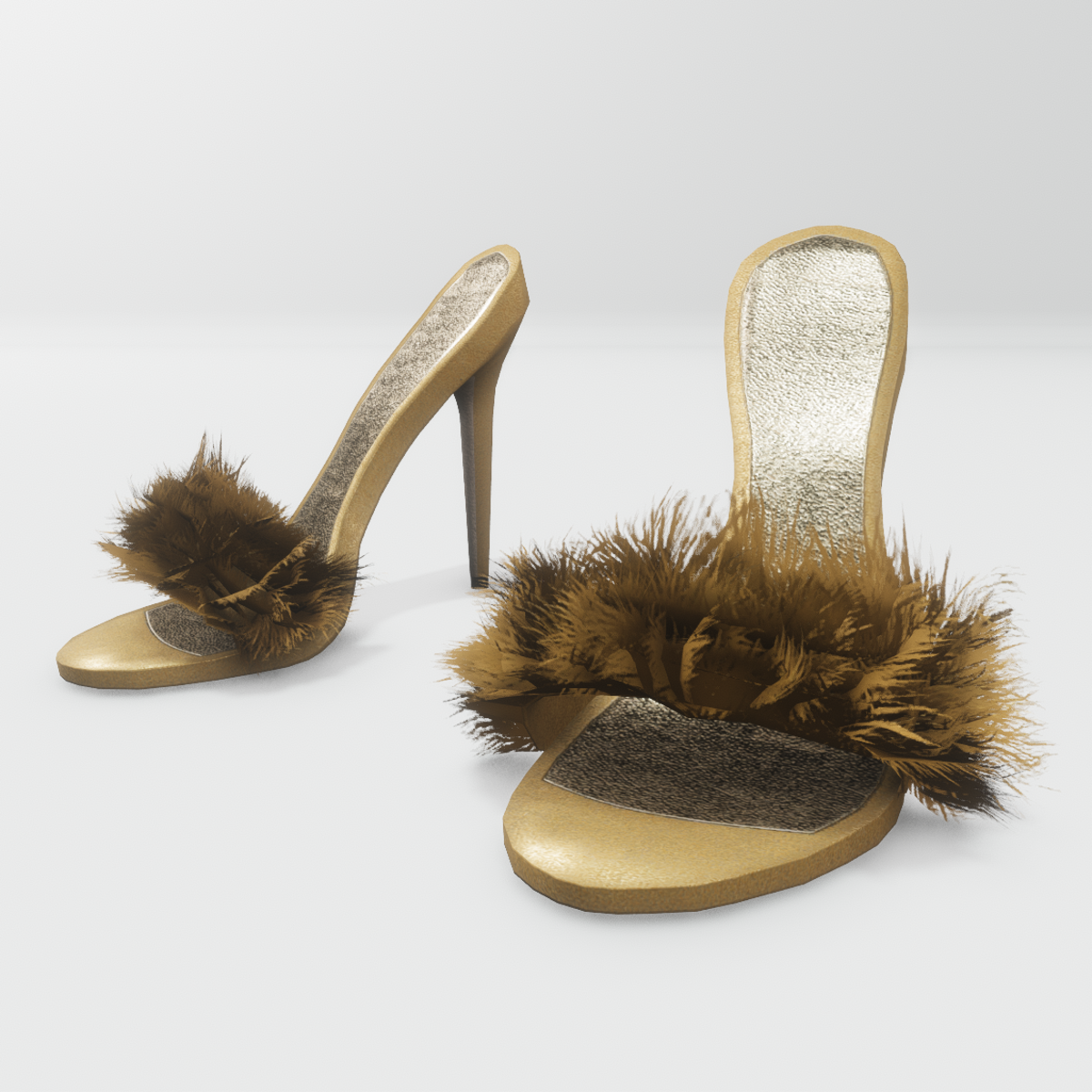 High heeled slippers for avatar Nicci. Stiletto heels, leather material and long decorative fur in yellow colour. Get the free demo before purchasing here: https://store.sansar.com/listings/e1107515-f91c-4ab0-95d5-0da9c575bbd2/niccis-fur-slippers----demo