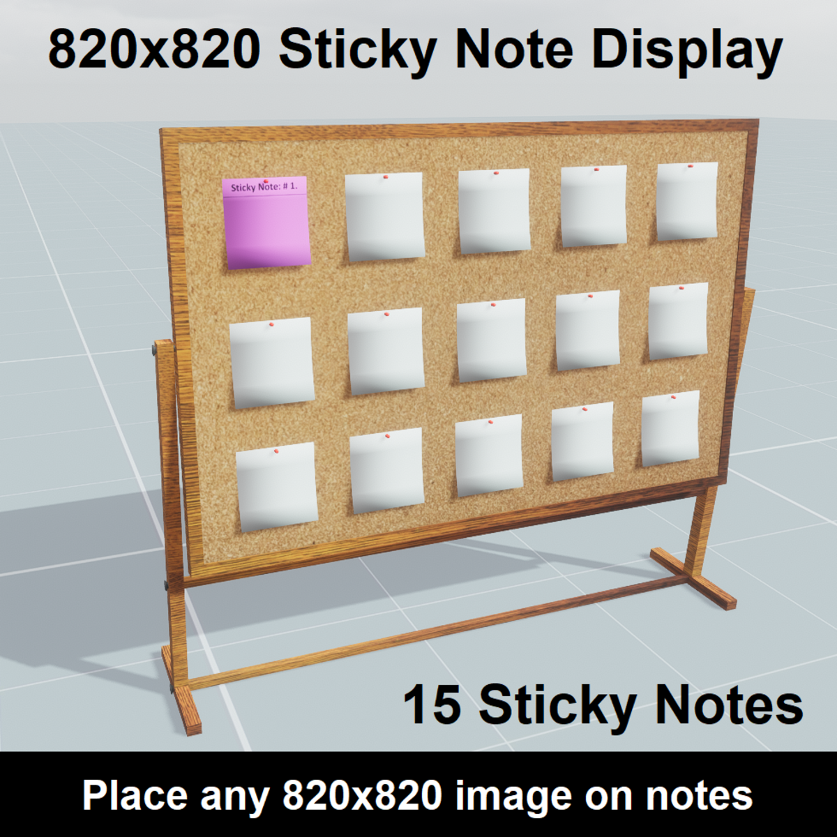 820x820 Sticky Note Display. Add upto 15 sticky notes to display. You may add any 820x820 images to the sticky notes. They don't have to be sticky notes, you may add any 820x820 image in place of the sticky notes! Enjoy!