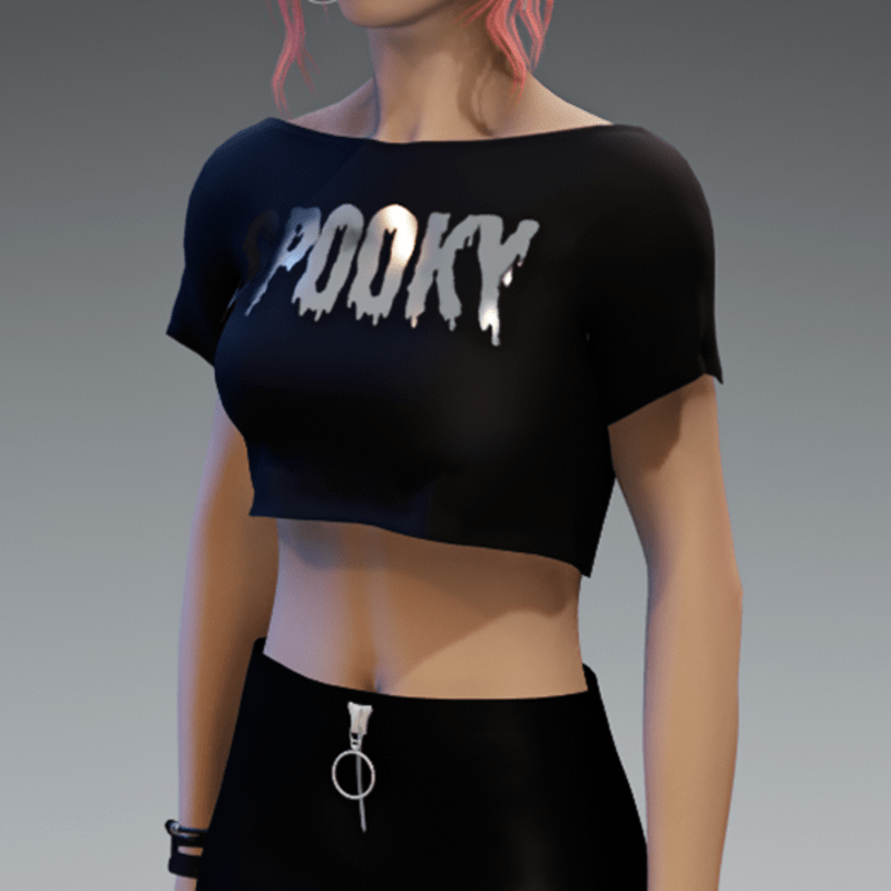 My basic short girlie with the spooky print in metalic shiny silver. If you like the skirt showing in the images, feel free to check my "Black Leather Skirt with Silver Zipper". Enjoy!