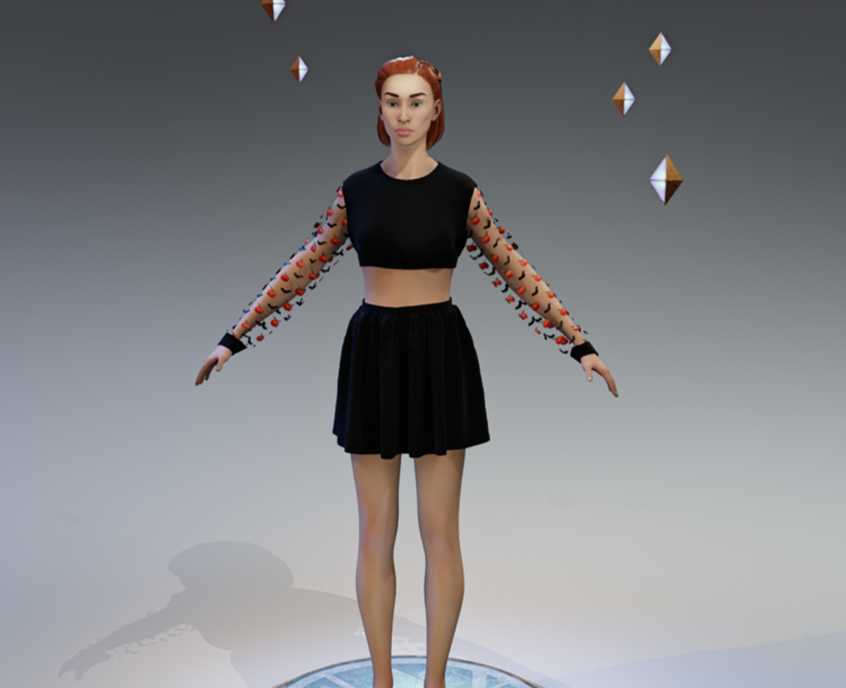 Black "crop-top" sweatshirt with shear halloween sleeves; pattern on sleeves is jack o'lanterns and bats; black texture by CG Elves freebies halloween pattern by kissclipart.com