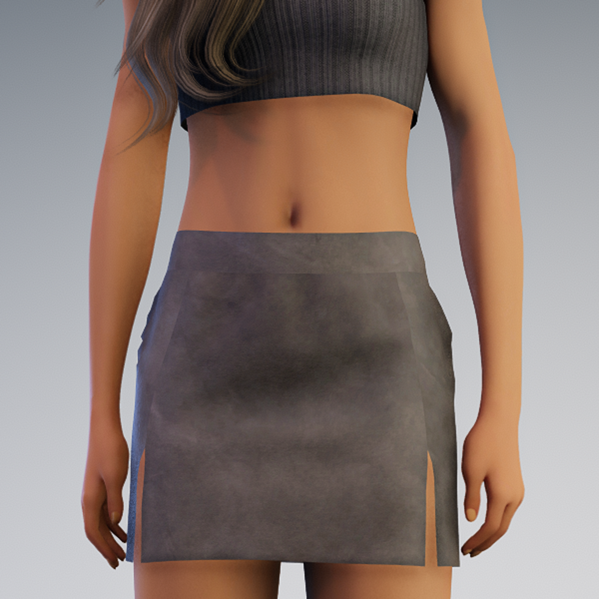 Easy Fit leather mini skirt with front side slits. Belt and darts for a perfect casual fit. Dances well. No adjustments needed for Avatar 2.0. Try the DEMO!