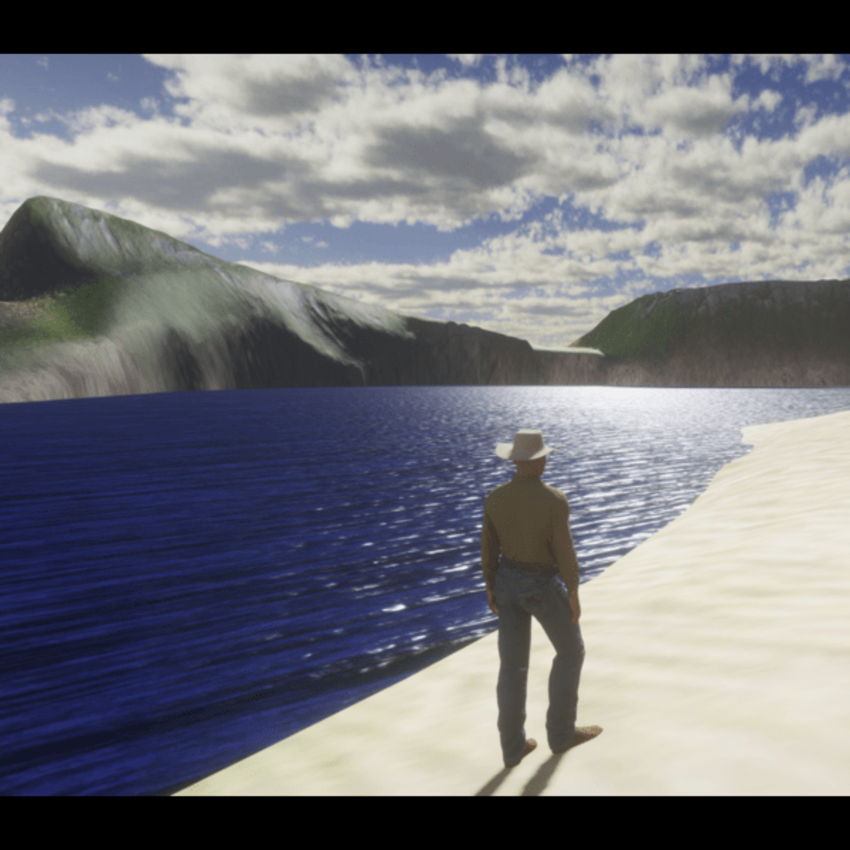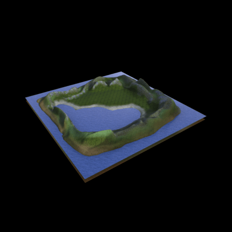 Basic small 257x257 meter mountain terrain patch with built-in animated panning water...resizeable..texture can be changed with your own.