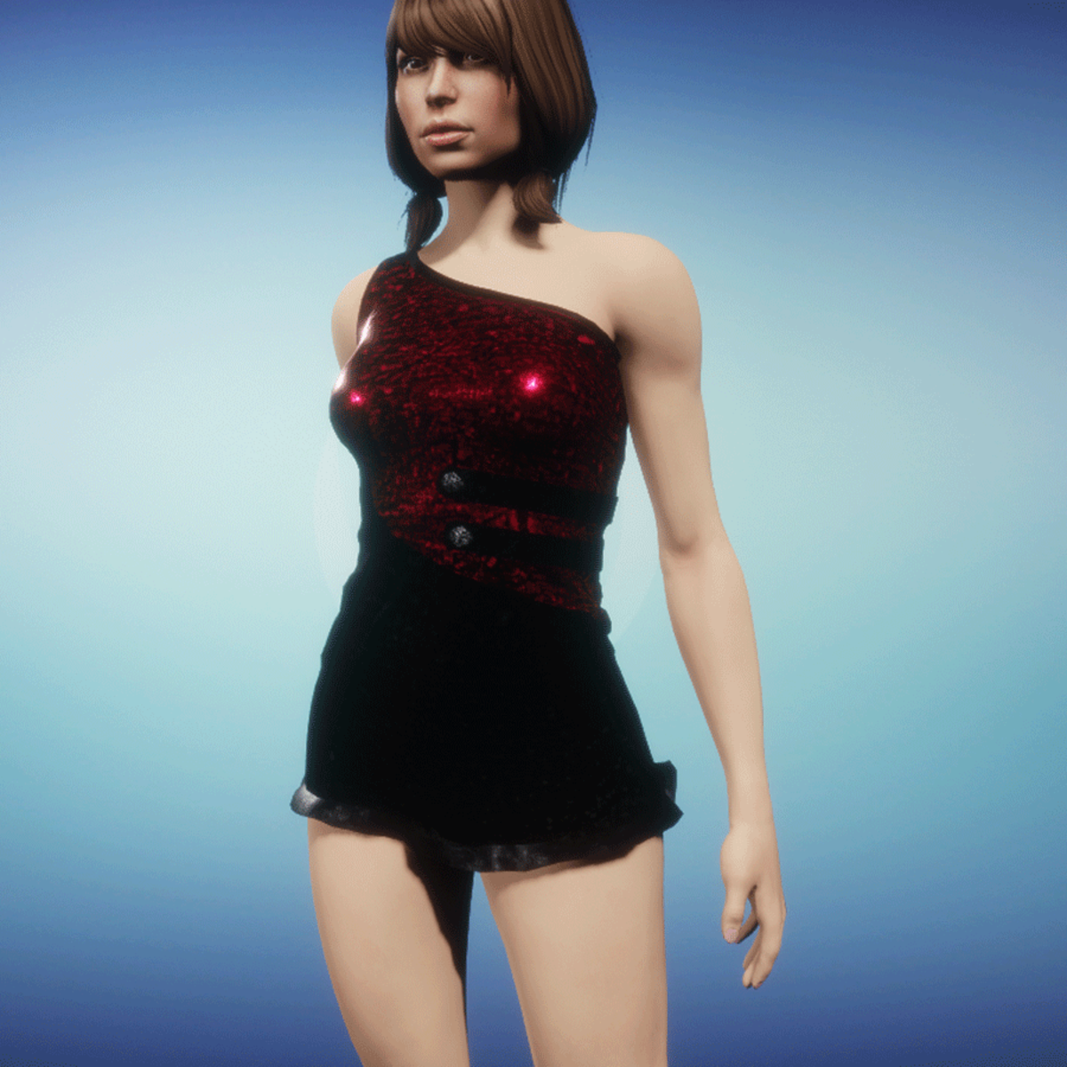 Modern summerdress with glitter latex and leather parts! Please simulate the clothes before wearing to adjust it optimally.