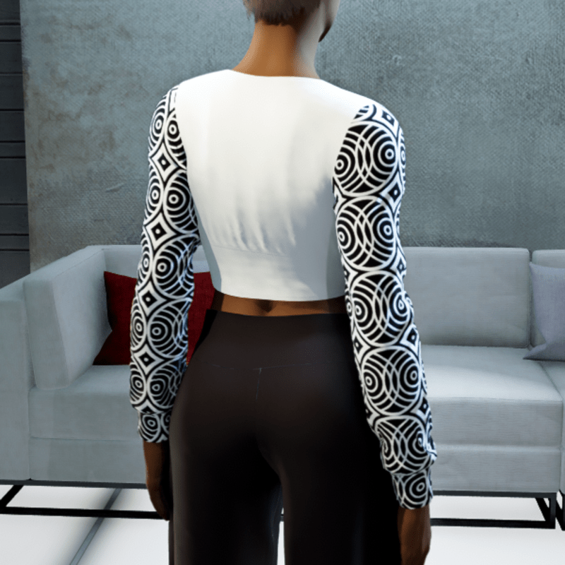 - Cropped V-neck Blouse - White and Black Circles