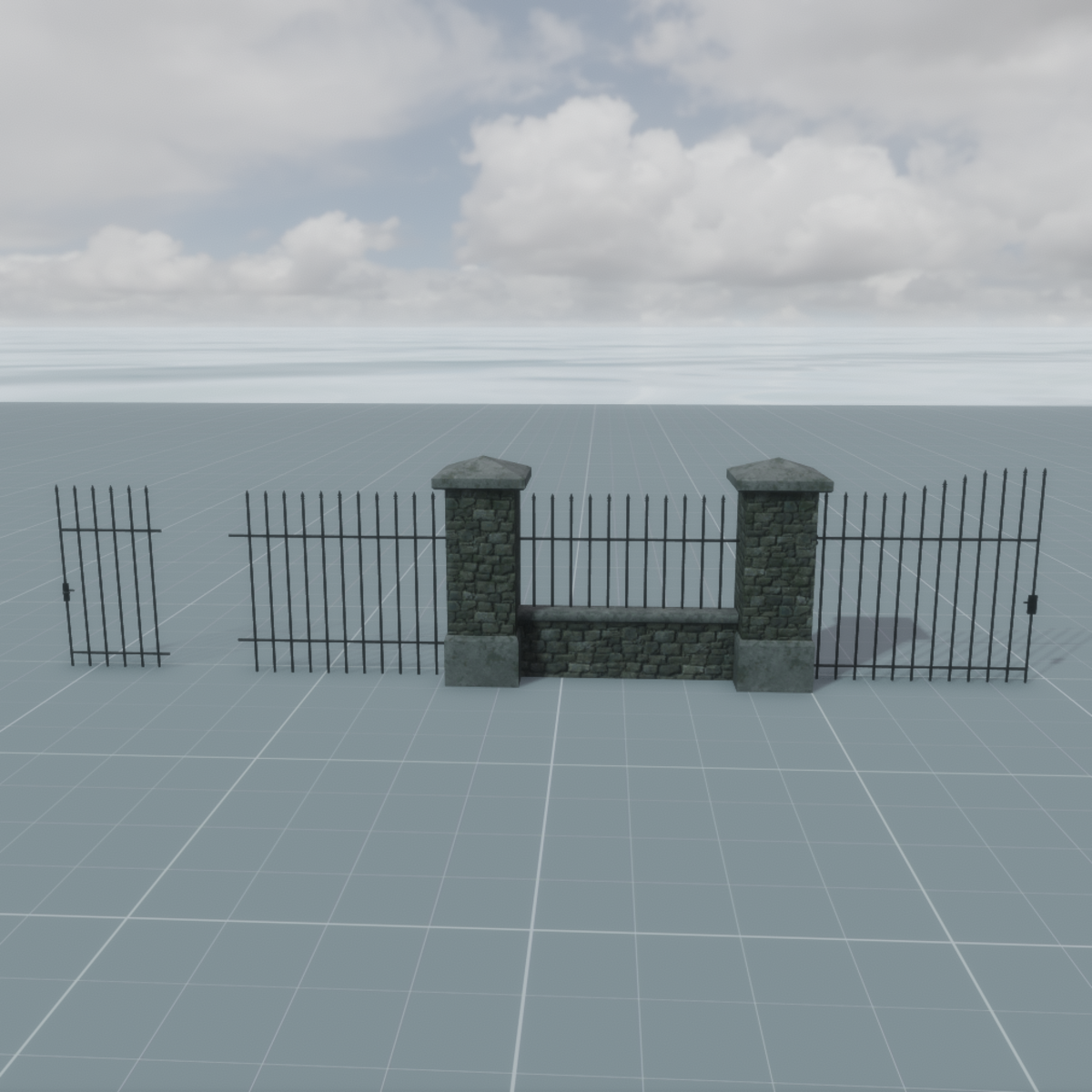 Park or Garden Walls Set, all pieces separate. Copy as many as needed to build your park or garden wall. Included are 1 pillar with hinges, 1 pillar without hinges. 1 low wall, 1 large (main) gate, 1 small (side) gate and 1 fence. All gates have the right pivot point in case you would like to animate it to open and close (tested).Happy mix-matching! Collision: yes.