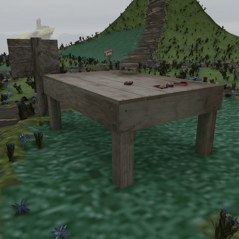 Wooden Table with moss and dirt distressed ~~Can be seen in Fundee Design Experience~~ https://atlas.sansar.com/experiences/darkfyrealgoma/fundee-designs Table only not items on table. Full Size Table