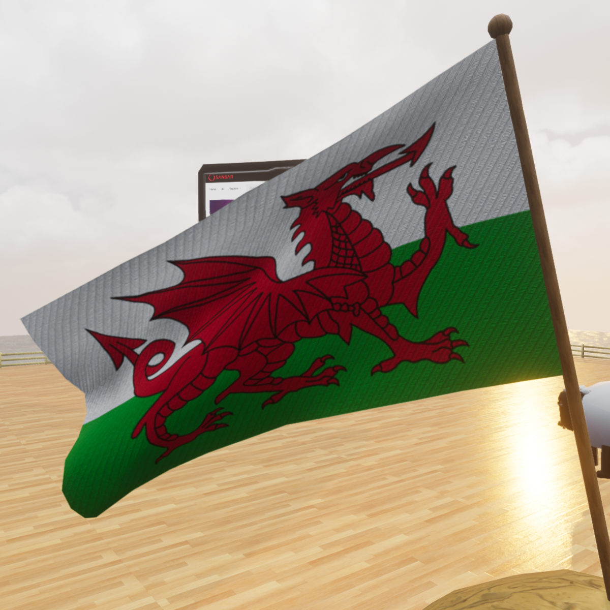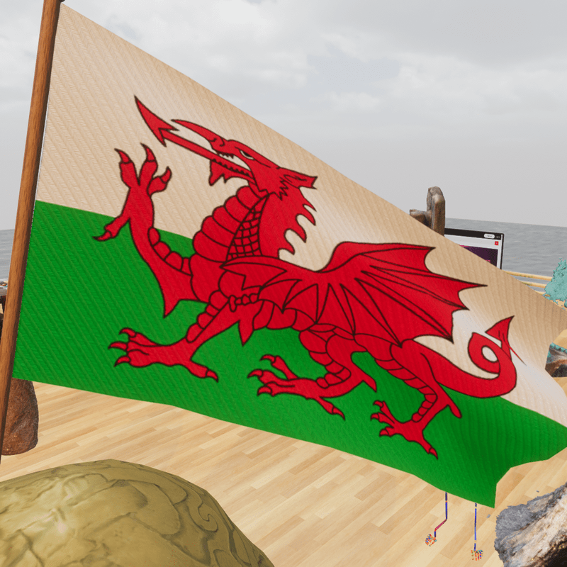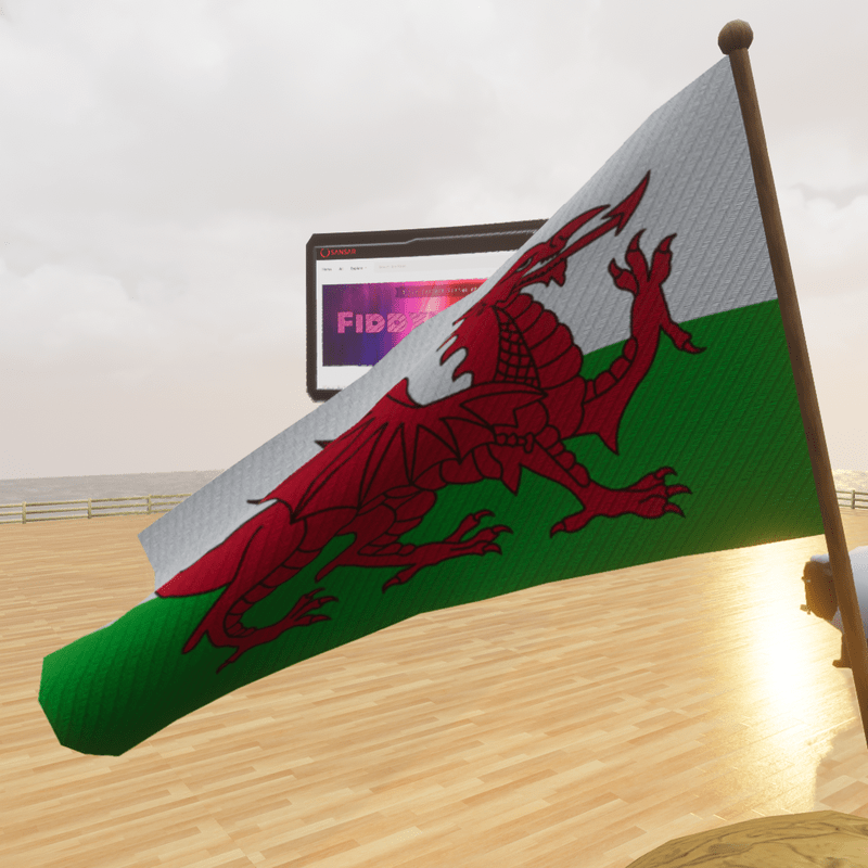 Simply the coolest flag - it doesn't matter if you're not from Wales, as there are plenty of good reasons to have a flag with a dragon on it! Flag comes with a 10 second wind animation which you can speed up or slow down in the properties for 'flag_v5' object. You can even change the main Albedo texture to a different image - doesn't even have to be a flag! You do this in the Material settings for 'flag_v5' object. Dig around; you'll find it. Tilted at an angle by default, but you can change this too. Please remember to select both the 'flag_v5_pole' and 'flag_v5' objects together before tilting, as otherwise you'll end up tilting either the flag, or the pole, but not both together. Happy flagging. Resale permitted. View the item in-world at: https://atlas.sansar.com/experiences/fiddybux-2071/fiddyland-base
