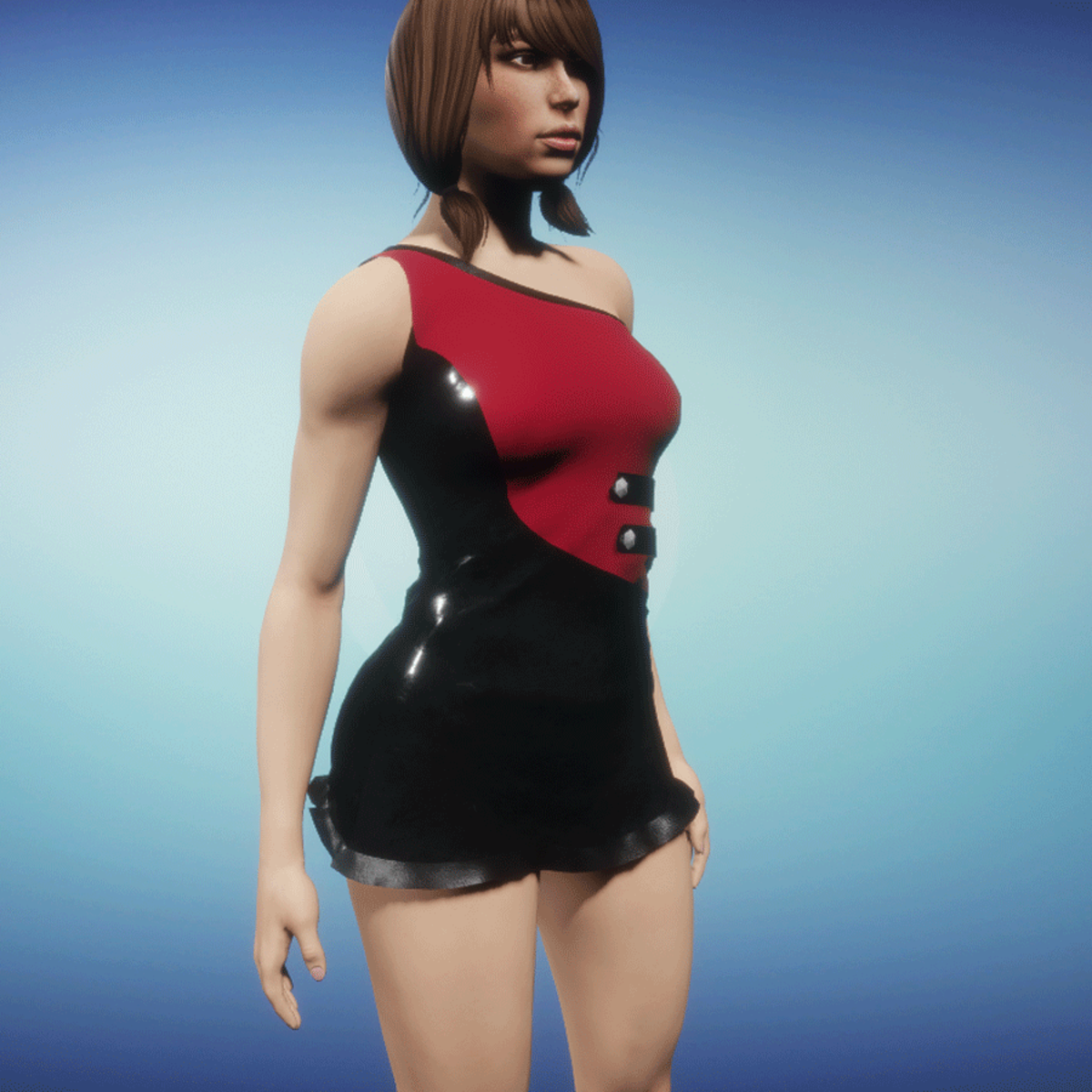 Modern summerdress with leather parts! Please simulate the clothes before wearing to adjust it optimally.