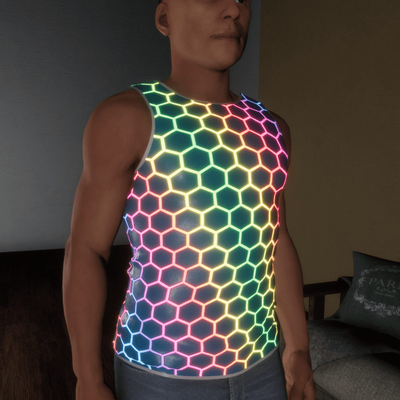 High quality sleeveless shirt made of colored leather with glowing parts. Please don´t forget the ratings ;) You can simulate the clothes before wearing it to adjust it optimally.