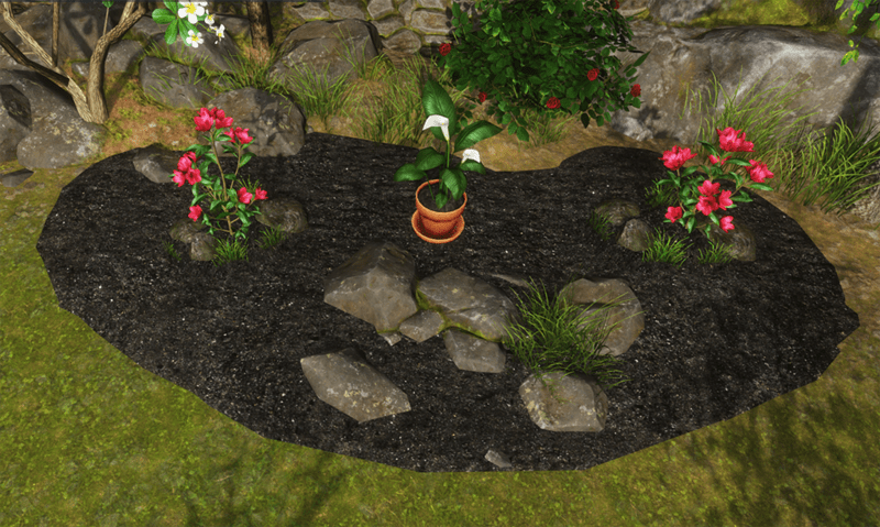 A large patch of soil to use as a garden bed or as a base for a rockery - see images. Resize and push down until edges are almost level with ground. Free. See in Sansar experience - https://atlas.sansar.com/experiences/reidparkin/reid-s-plants