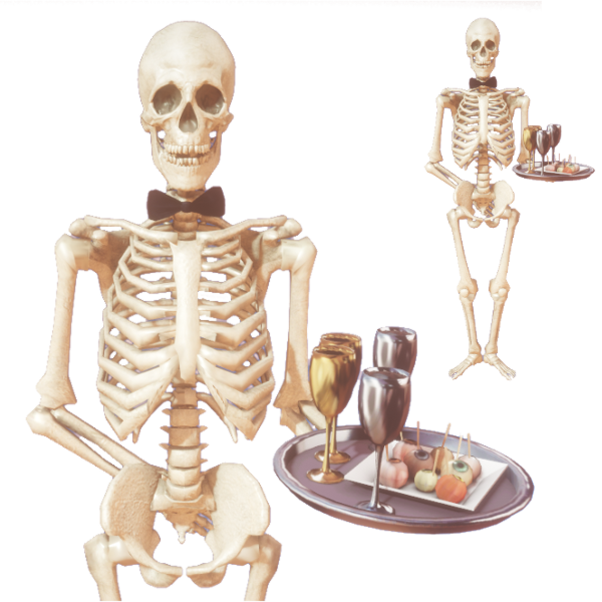 Animated Skeleton Butler with black tie bow serving a creepy snack on a tray. Halloween Decor. No collision. Please do not resize. Smooth animation loop. https://atlas.sansar.com/experiences/cat/move-your-bones