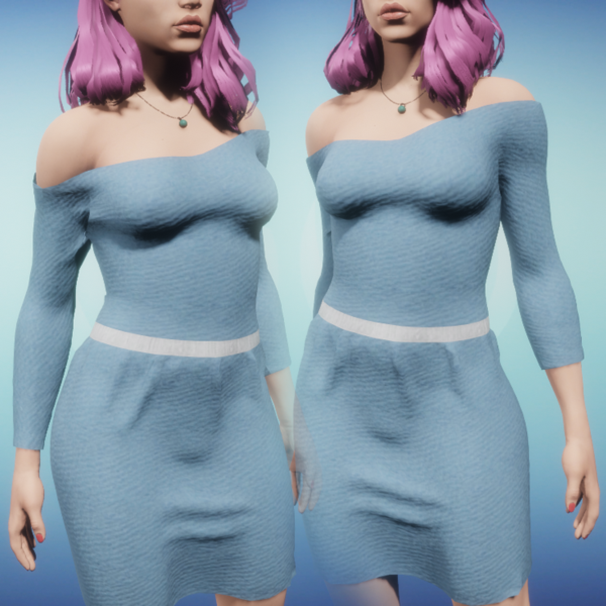 Soft dress for your every day look. Some tips: -This product has been made in Marvelous Designer, so don't forget to click Adjust button to fit it perfectly on your avatar. -You can see from behind on the Lookbook screen that sleeves are messed up a little bit, but in game everything looks fine.( i don't know how to fix it) I am just being honest,because i am still learning. :) Enjoy!