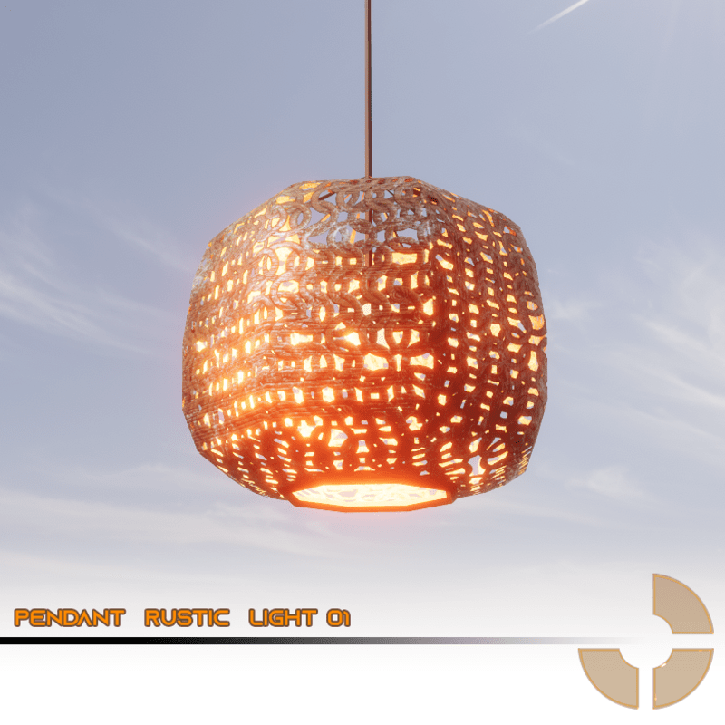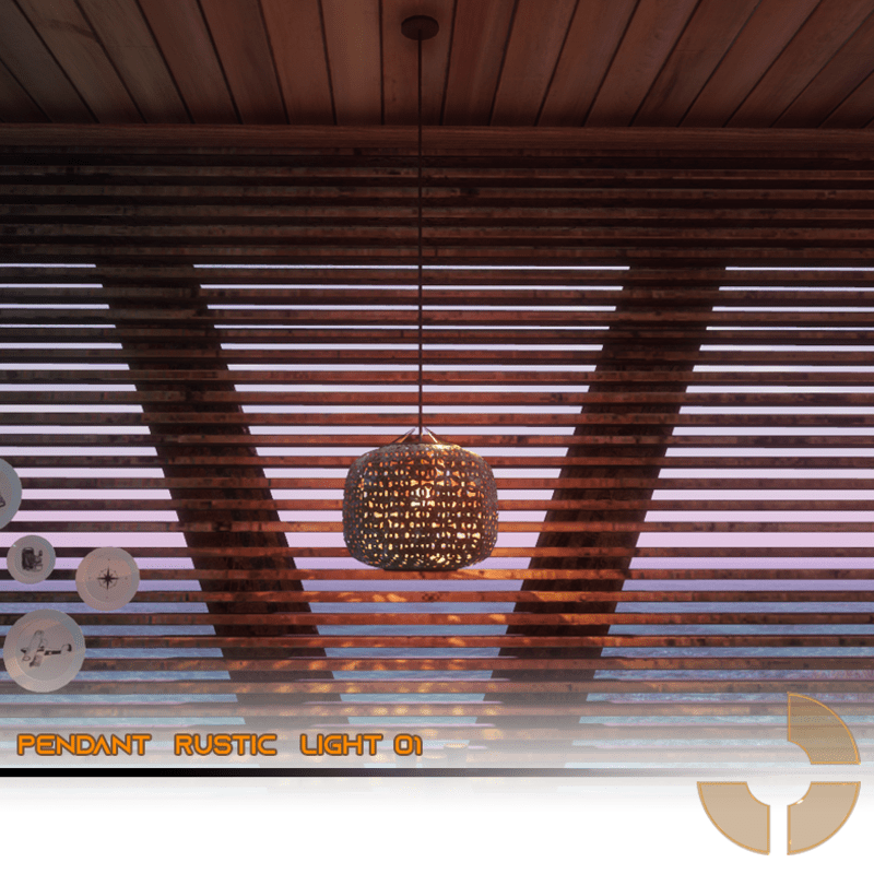 A Pendant Luminaire for rustic places, outdoor scenes , beaches scenes, Bungalows and others ambients. PBR Texture with lights Ready. 472 Polygons.
