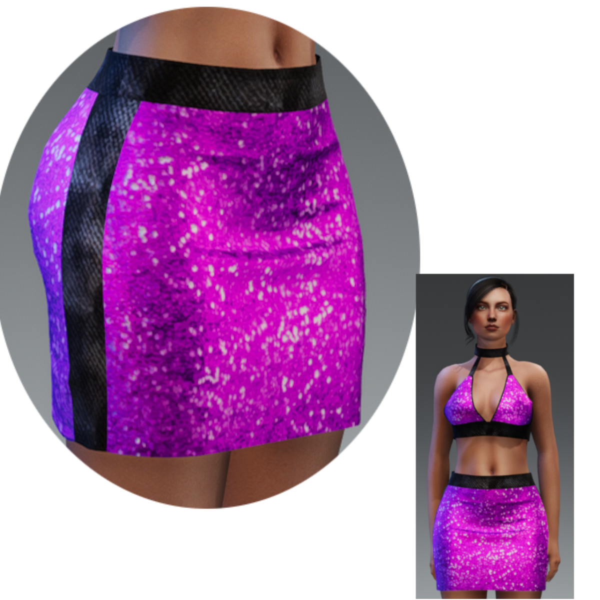 Sexy Sequin sparkle Skirt with faux crocodile skin trim. Items sold separately. This ad is far the Skirt only, check out my store for the matching top and to see the other great colors. Made in Marvelous Designer and can be adjusted to fit most avatars. Created on a custom avatar, slightly curvier than AV2.0, to allow for a better custom fit. Will require transform and adjust tools. I usually scale it larger for Alina and Smaller for AV2.0 To learn more about transforming and adjusting Marvelous Designer clothing visit this link: https://help.sansar.com/hc/en-us/articles/115005693363-Fitting-Marvelous-Designer-clothing-to-your-avatar#some-tips Pictured with Alina Tested on AV2.0 To check fit, try on the free version here: https://store.sansar.com/listings/9d0127bc-f36e-4194-8a3a-68a4dcbf556f/gift-sparkle-party-skirt----teal