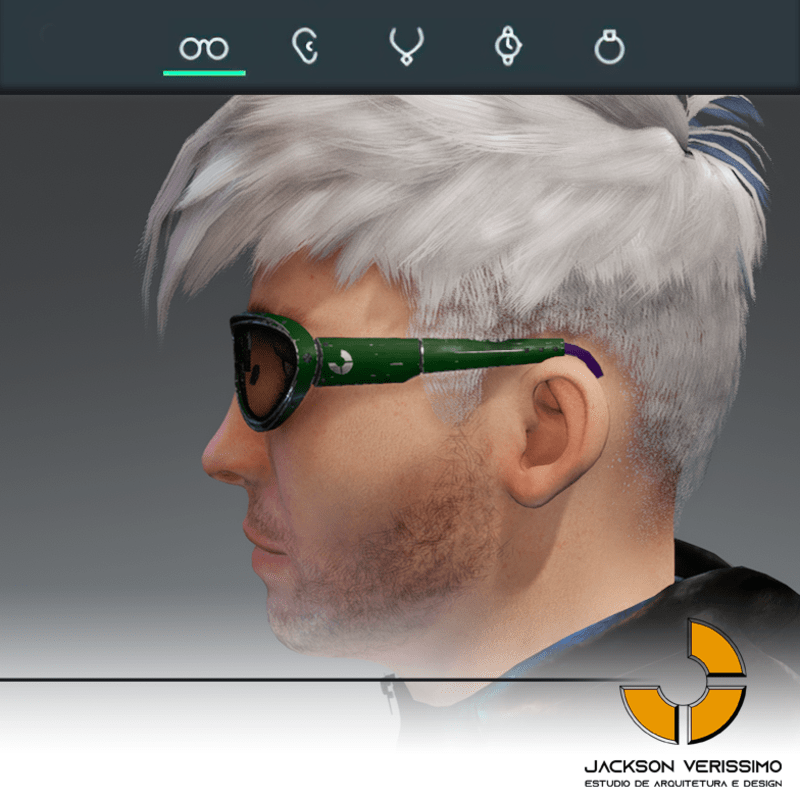 Janeiro Glasses- Amazon Green pecial design for sunglasses painted metal. Original by JackVerissimo. Transparent and Metalic Lens. Frame of Wood with color detail. Special PBR textures. Unisex. Match with all humaniods avatars. Sometimes you will need a easy adjustments to fit.