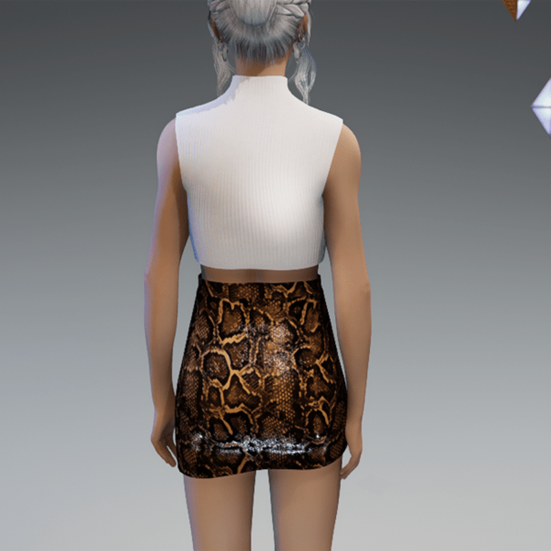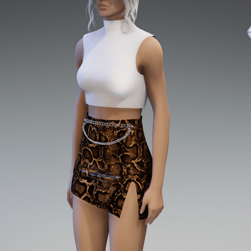 This asymmetrical mini leather skirt comes with some chains on the front and a slot on the side. Enjoy! <3
