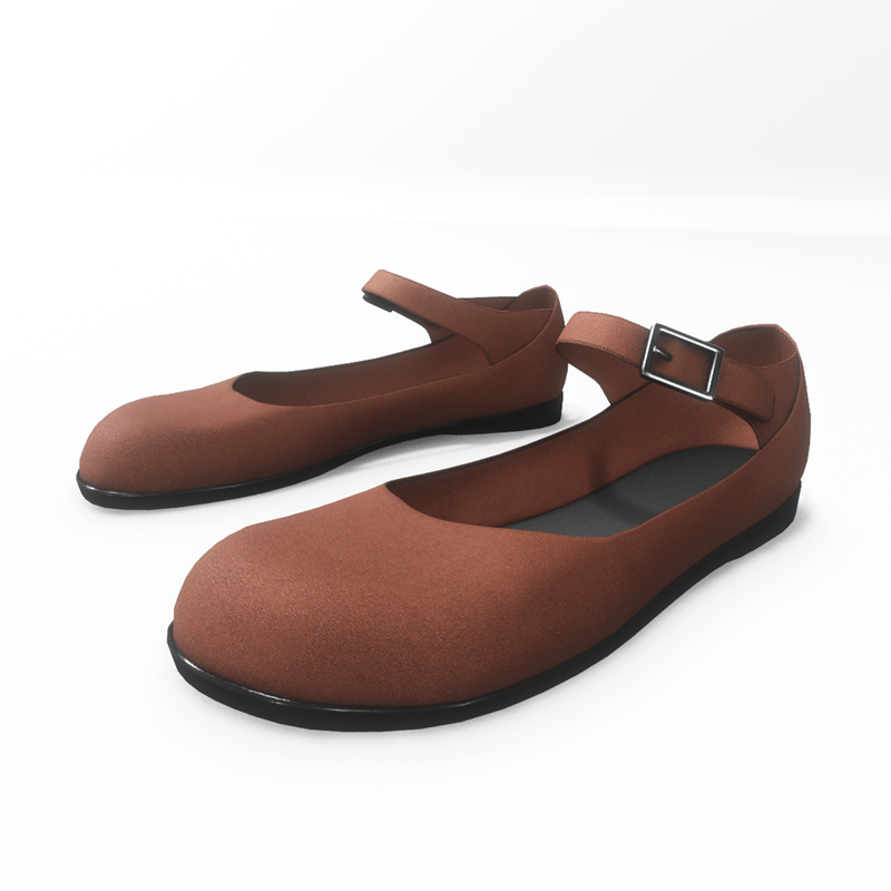 A pair of mary jane style cute flat shoes, with matte brown leather upper and black rubber outsole. It fastens with a buckle strap. Please get the free demo item to check the style and fitness before purchasing here: https://store.sansar.com/listings/478f1485-b477-4cdd-b242-f2a11c482700/av-20---mary-jane-flats---demo