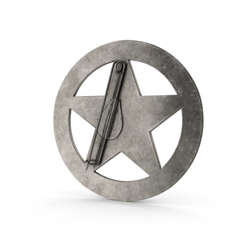 A photoreal model of a sheriff badge for use in any project. The model is built to real world scale and textured to use at any angle.