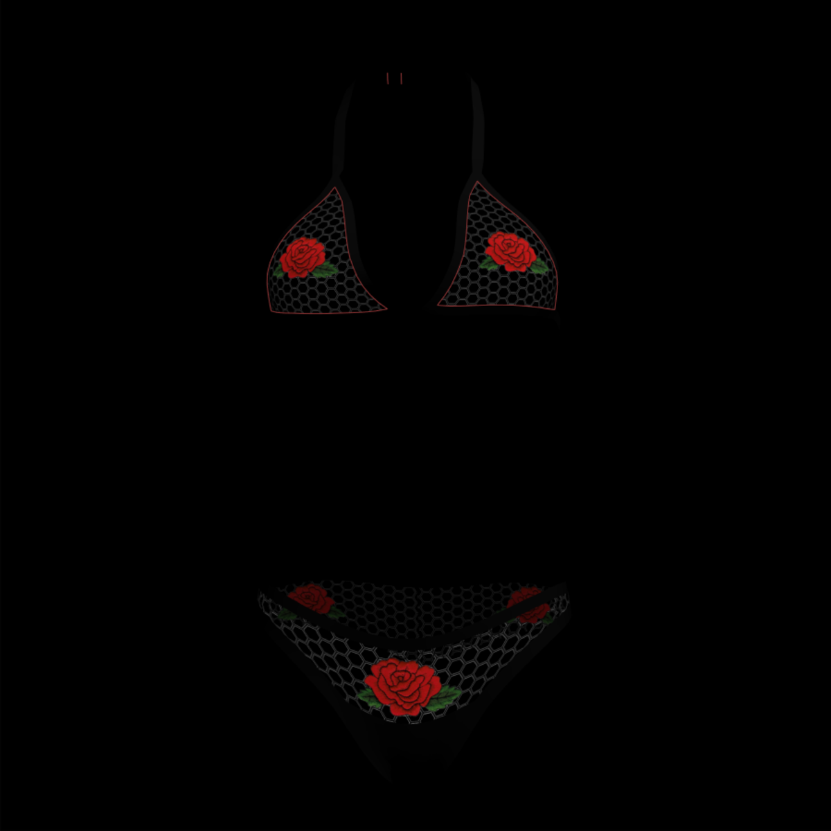 Sexy and cute fishnet bikini with roses for the perfect accent :D Also Comes in red and white.
