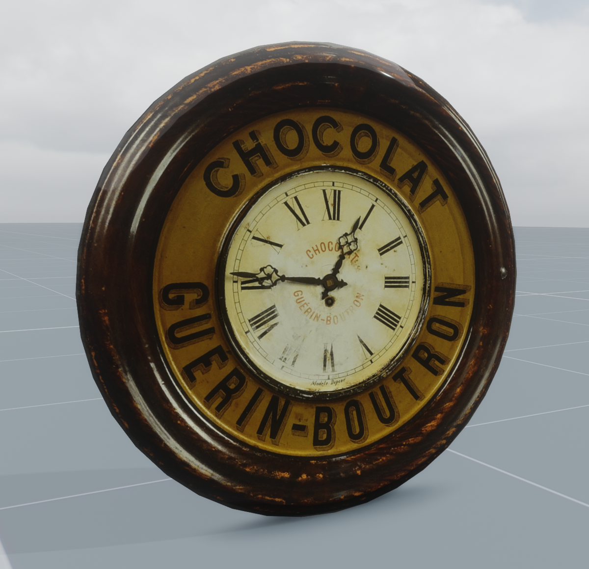 Chocolat Guerin-Boutron Wall Clock. Low poly. See it at https://atlas.sansar.com/experiences/brocker/fables-museum