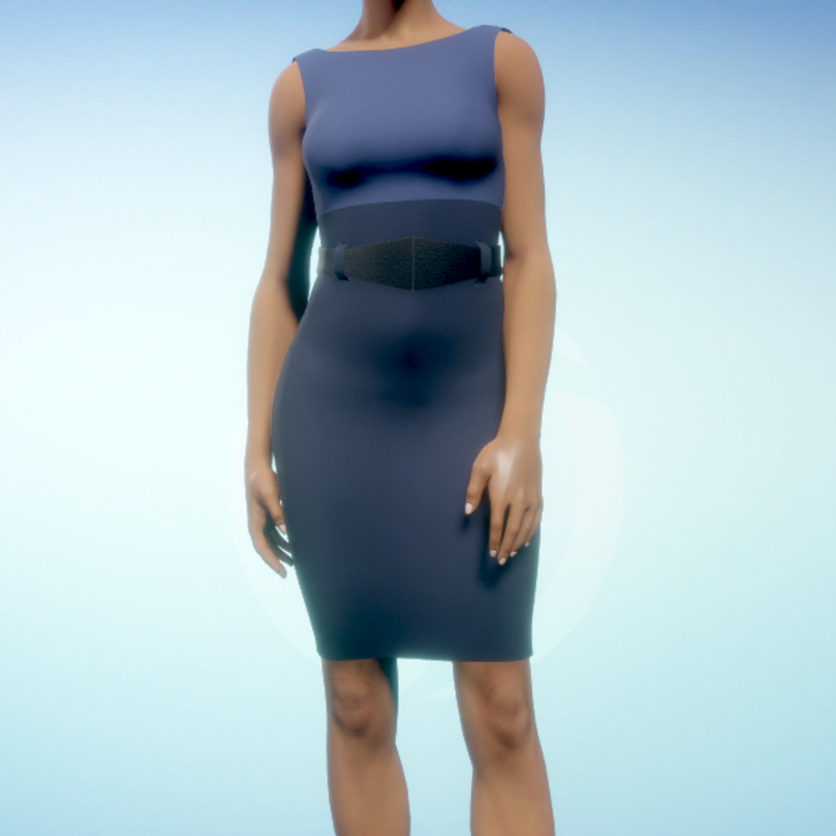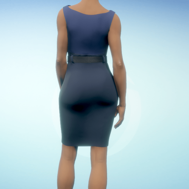 Boatneck executive dress with a black leather belt. By Sweet Distractions Note: You will have to tug the material in some places to get rid of 'poke-through'.