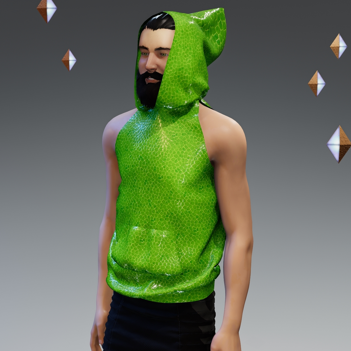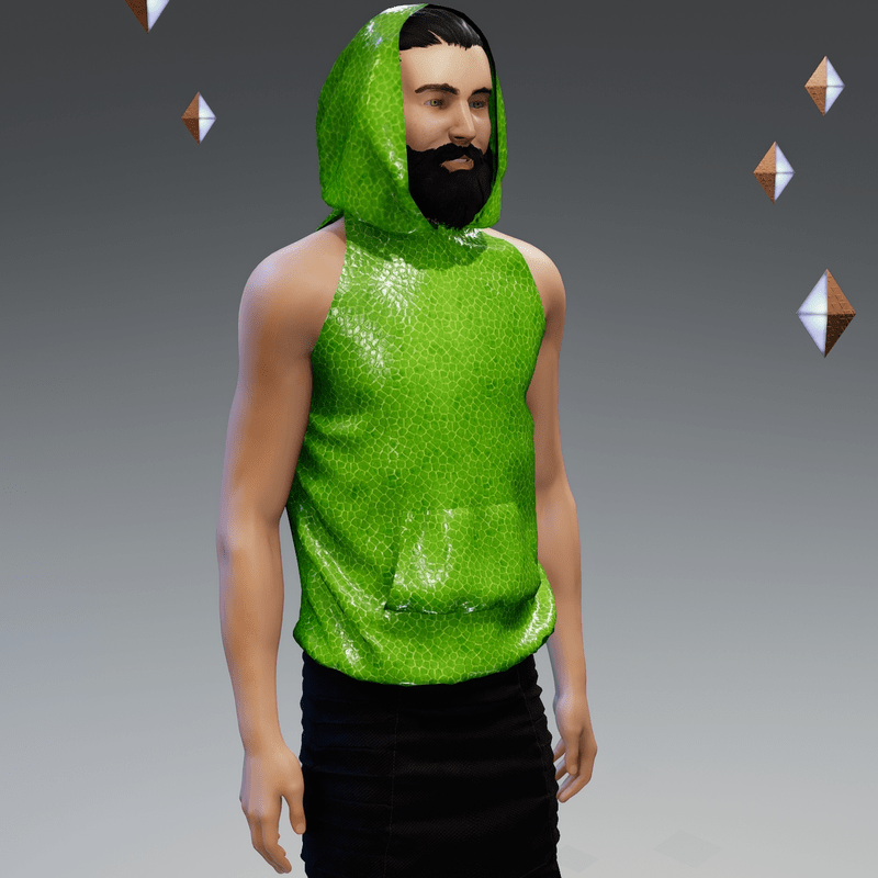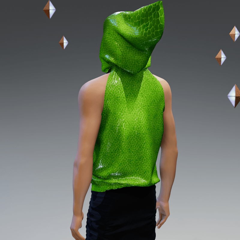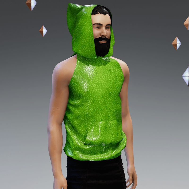 Constructed with an oversize hood, this garment can be adjusted using the Marvelous Designer tools built into Sansar. Make the hood high and long, fold it down to a more traditional hood-like shape, pull it back completely or pull it off in any direction – it’s up to you! High-resolution textures were used in the construction of this item. This garment will fit all male and female avatars but will be looser on smaller shapes. Tip: This garment is sold with the hood at full extension when first worn. If you wish to keep it that way, I suggest you pin the tip and midway towards the head first when you enter the adjust simulation. This link explains the tools (grabbing, pinning, pulling etc.) available in the adjust simulation: https://help.sansar.com/hc/en-us/articles/115005693363-Fitting-Marvelous-Designer-clothing-to-your-avatar Don't forget the (>) Simulate button.