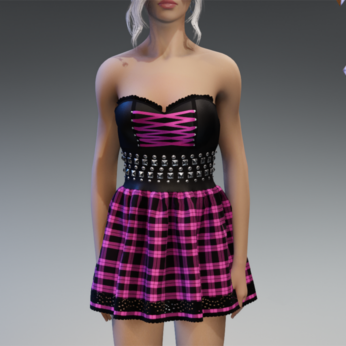 this cute punk mini dress comes with a lot of rivets on the front and back and also some lacing on the front. Enjoy! <3