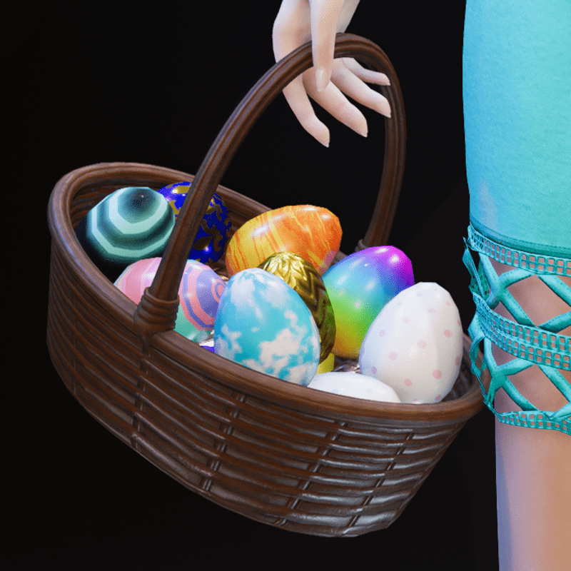 Handheld Easter Egg basket, worn on the ring slot so follows the hands movement Contact "TheNick-1981" through Sansar or Sansar discord if you need re-rigging, a custom design or if there is a problem etc.
