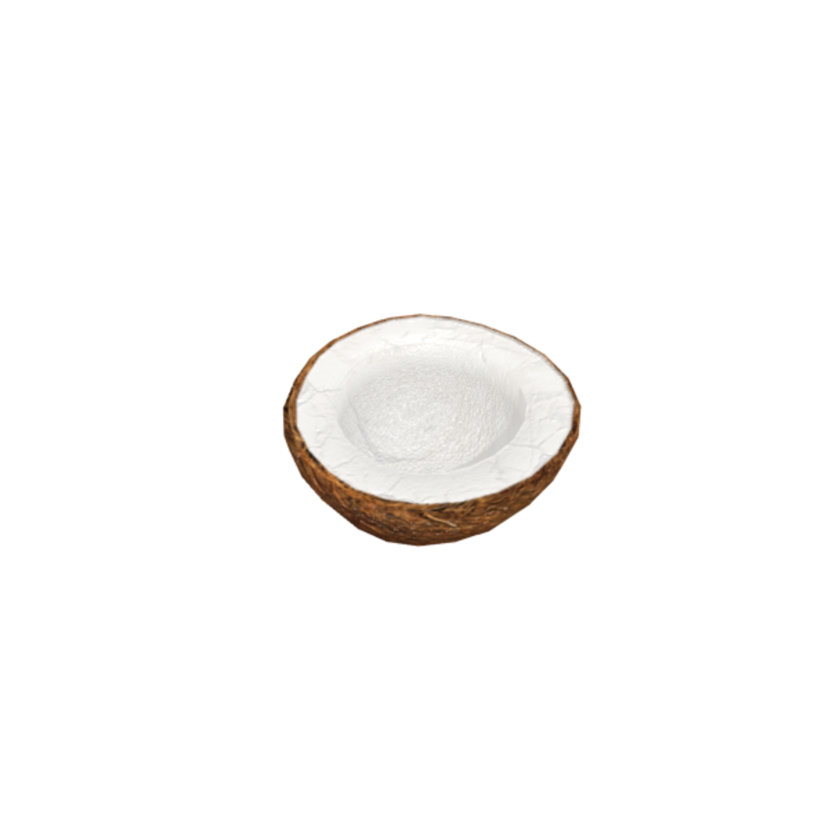 Half of a coconut with a good collision model. 766 Triangles, 3 Draws, 1024x1024 Albedo, 1024x1024 Normal, 1024x1024 Roughness, 128x128 Metalness