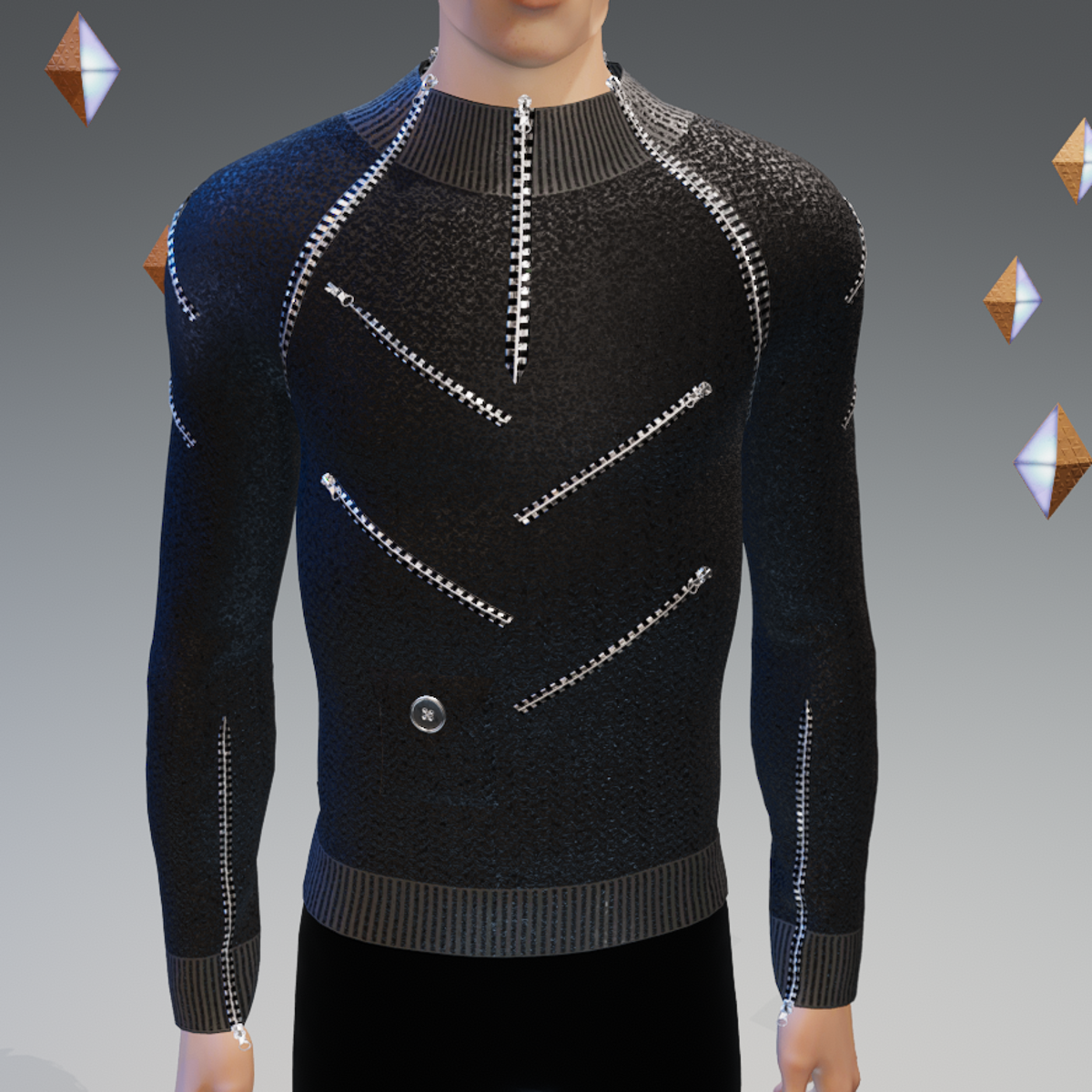 - "Leader" Gotico-Mundano 17 Zippers Black Sweater - Male