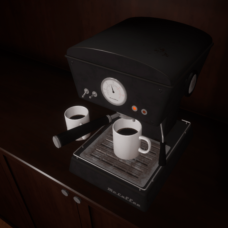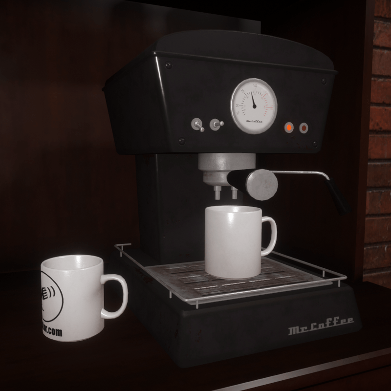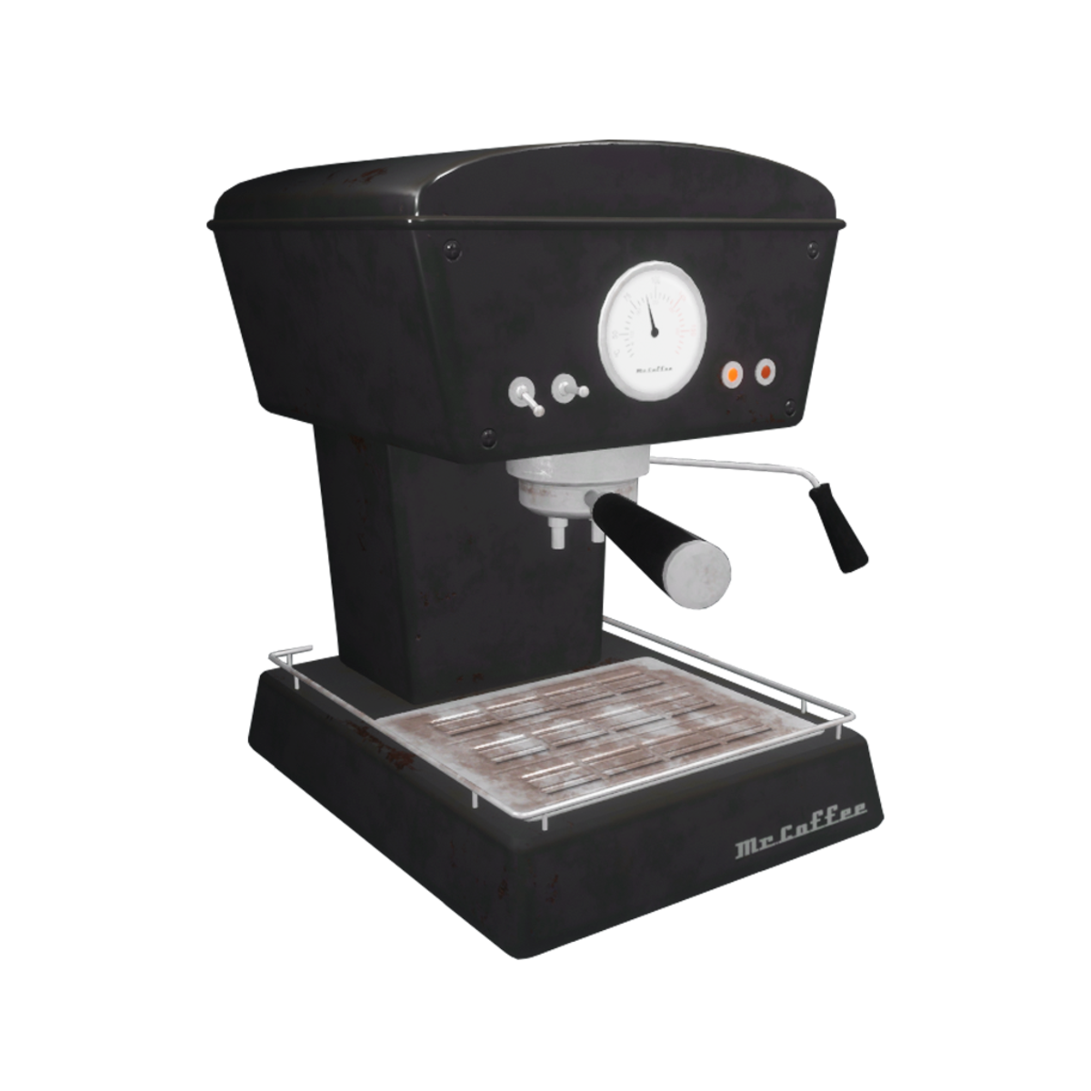 As seen in 114 Harvest experience. Old, distressed, retro coffee maker with proper physics mesh so that you can place the cup on it. You can check out the coffee maker at the following link https://atlas.sansar.com/experiences/draxtor/114-harvest