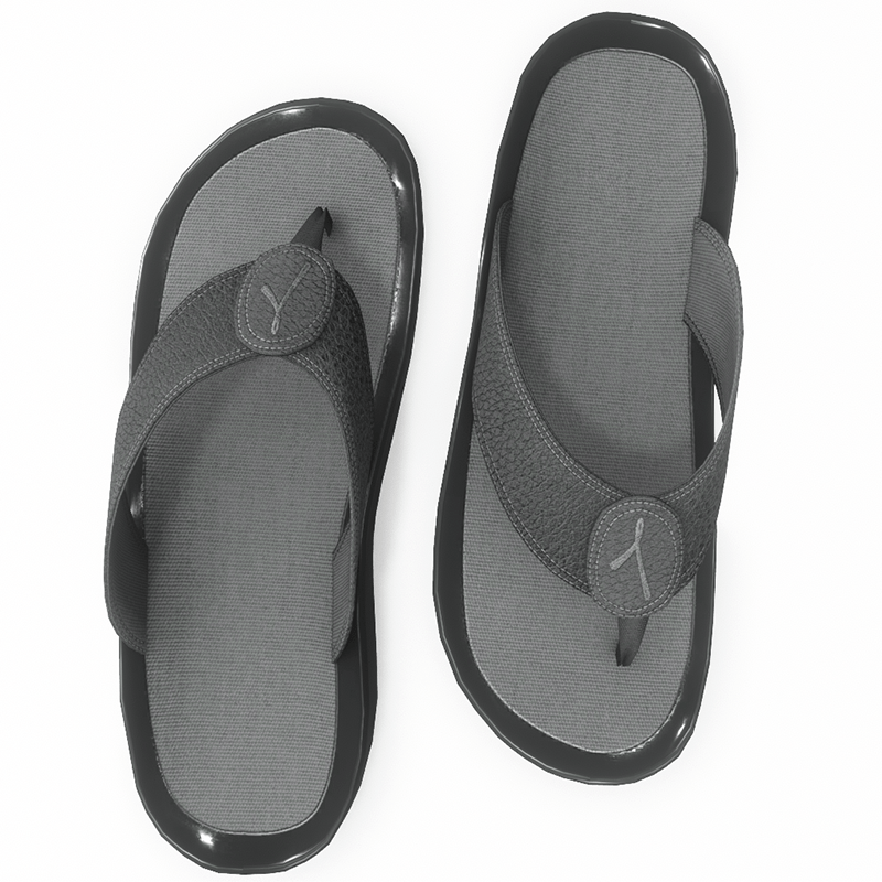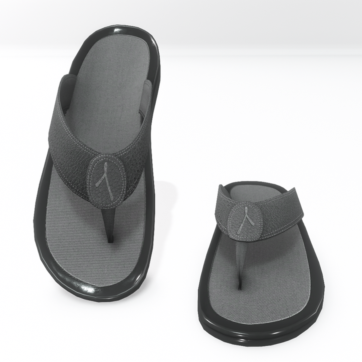 Casual summer sandals made with leather, fabric and rubber in grey colour. Get the free demo item before purchasing here: https://store.sansar.com/listings/1da24e43-e485-492c-aaea-8e06b0af195f/thong-sandals-for-male-av2---demo