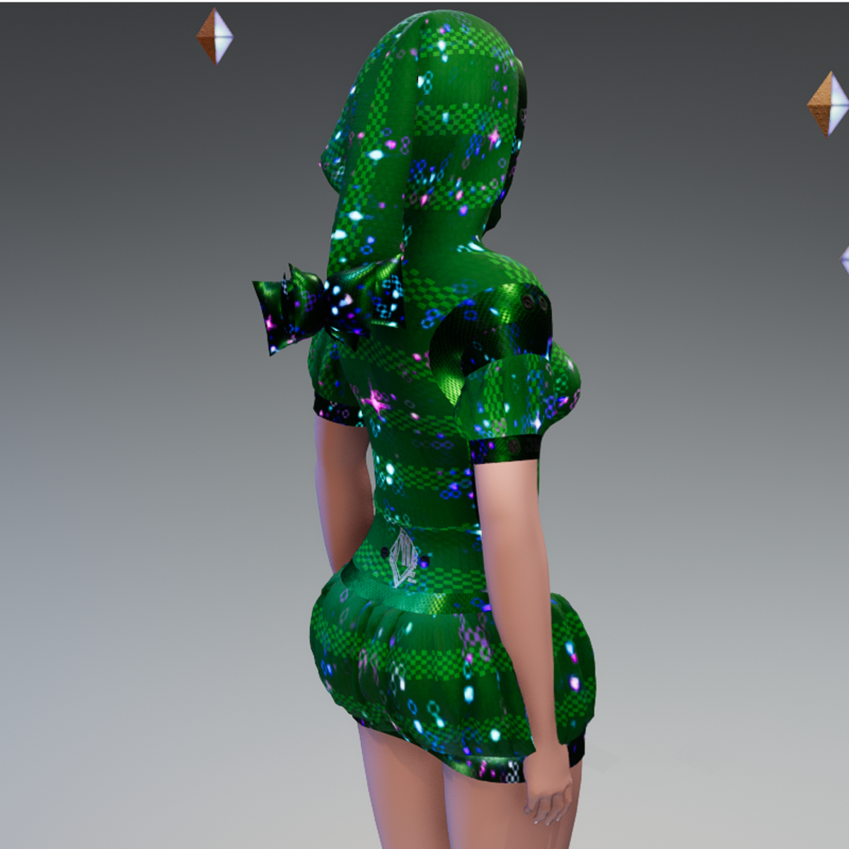- LARA_ DRESS_ GREEN GLOWING ANIMATED TWINKLE STARS