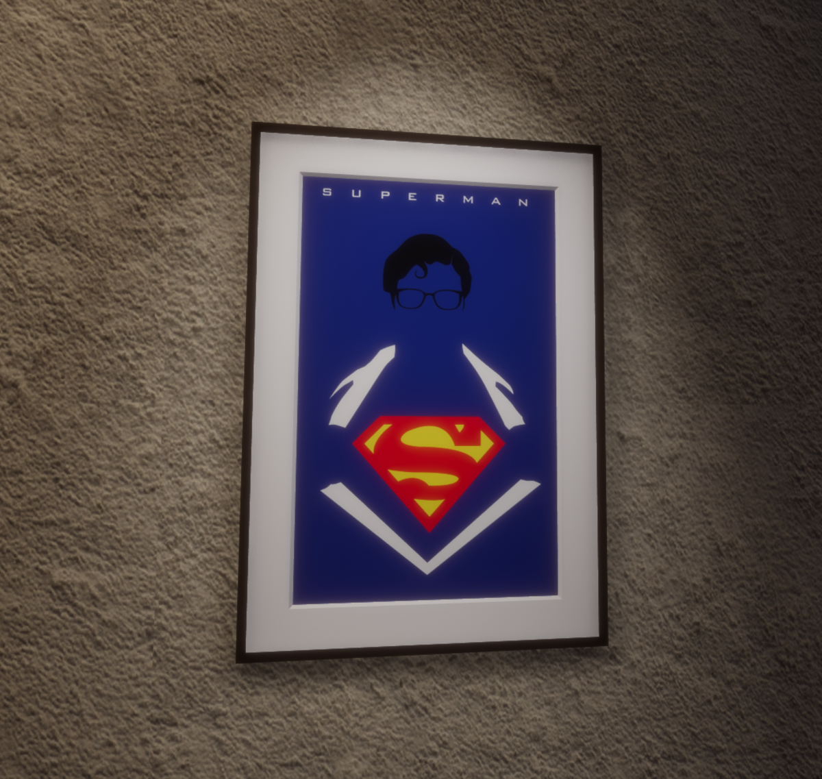 This original illustration captures reporter Clark Kent as he prepares to become the Man of Steel. The art is surrounded by a white matte and a sleek black metal frame. It is perfect for any superhero environment and a must-have for any true Superman fan.