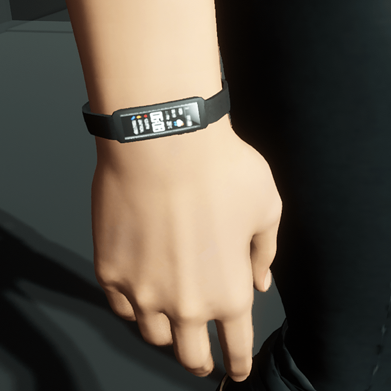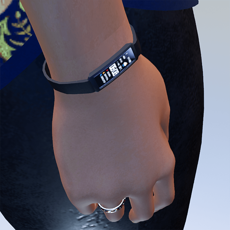 Smart Bracelet. Created with original size and adjusted before importing to SANSAR, in avatar 2.0 Male, you can use it in Female or other avatar by adjusting size and position. I appreciate you rate this product.