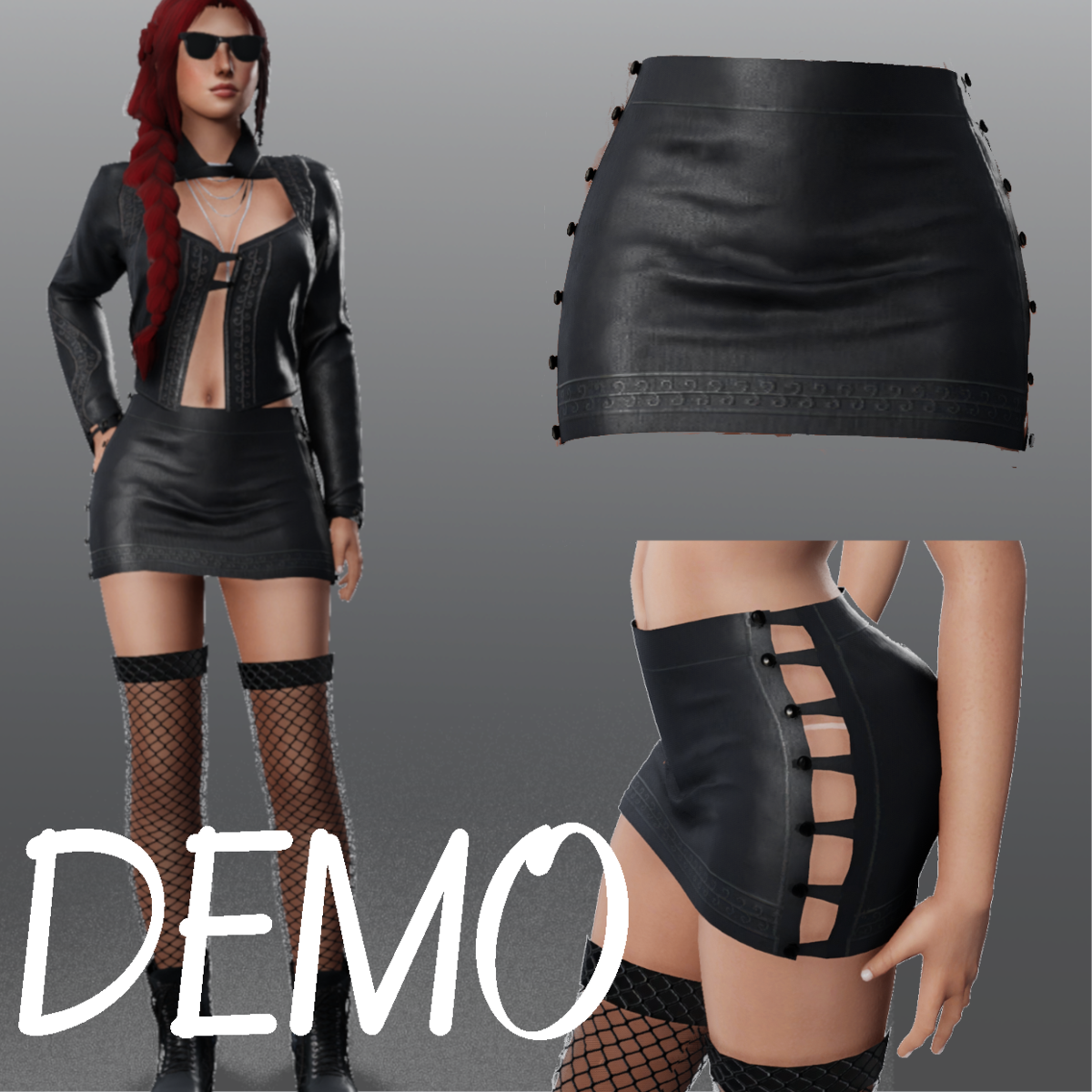 - Embossed Leather Skirt - DEMO