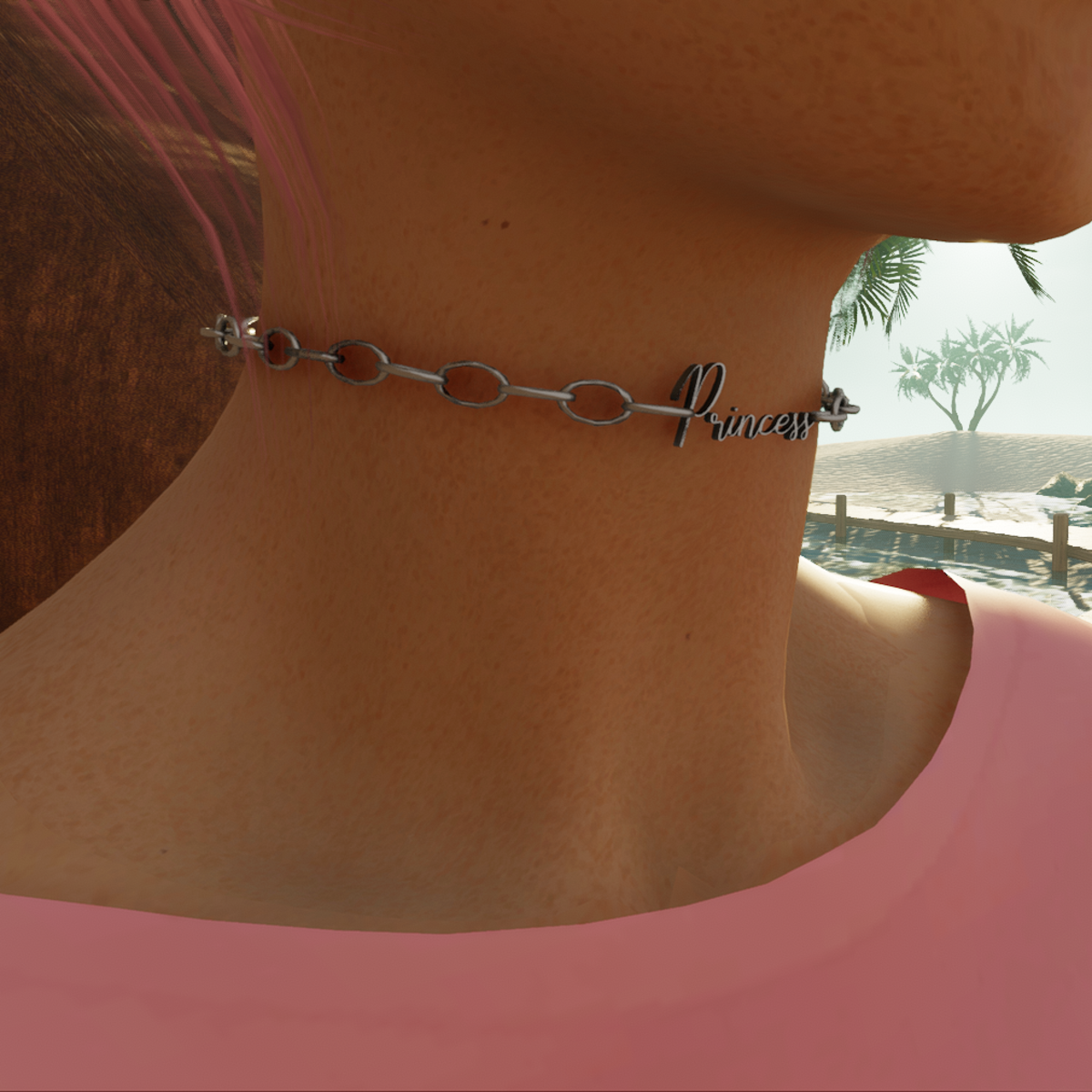 cute choker, it is rigged to the neck so avatars with thicker necks may not be able to wear it, rigged on the default avatar so the neck thickness isnt really skinny to start out with. More chokers to come :D comes in multiple colours.