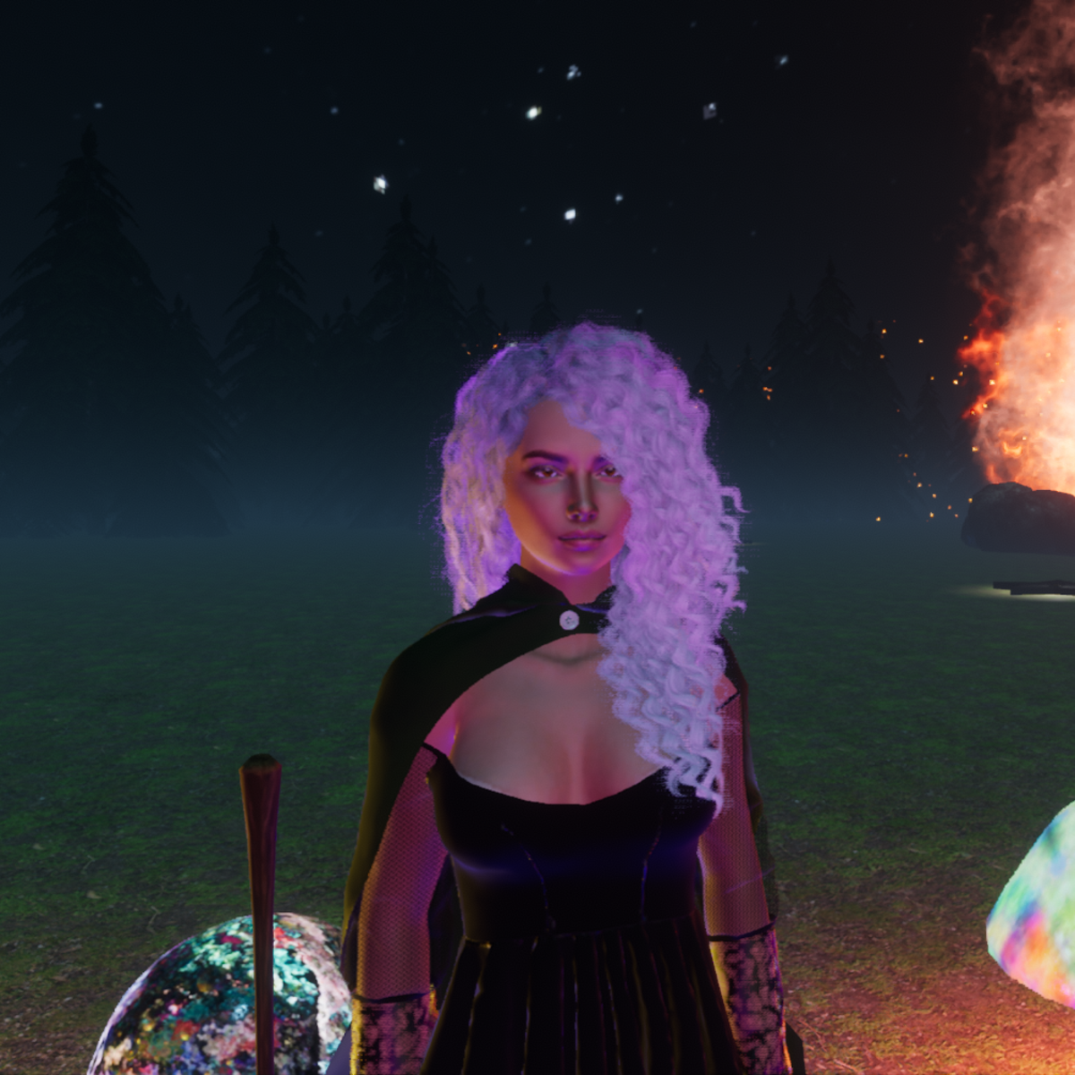 A simple cloak for simple folk. Perfect for the quiet old woman trio living in a humble cottage in the woods. Comes in purple, red, green, black, and white. Feel free to make other color or pattern requests.