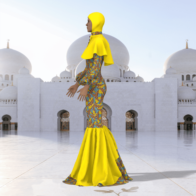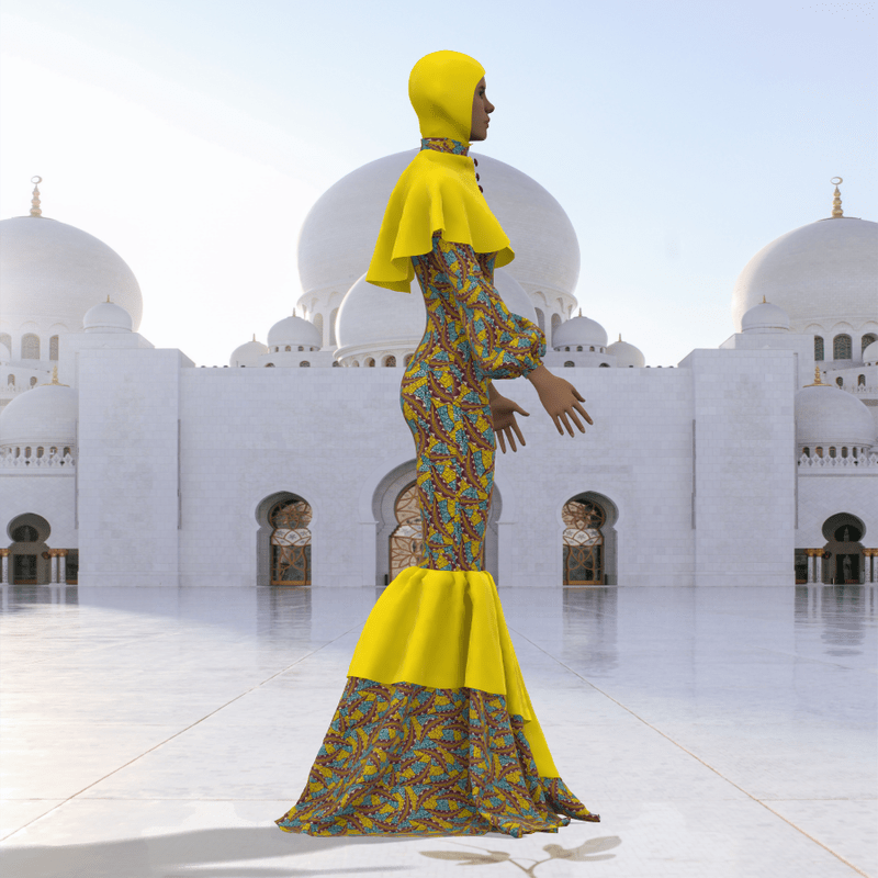 Do you want to celebrate EID on Sansar Here is a Female cloth for EID with African fabric, and a hijab. It is a long flowing gown with nice aesthetics, the cloth may appear with darker shades when stimulated. Made on the default avatar Stimulate and Enjoy EID MUBARAK