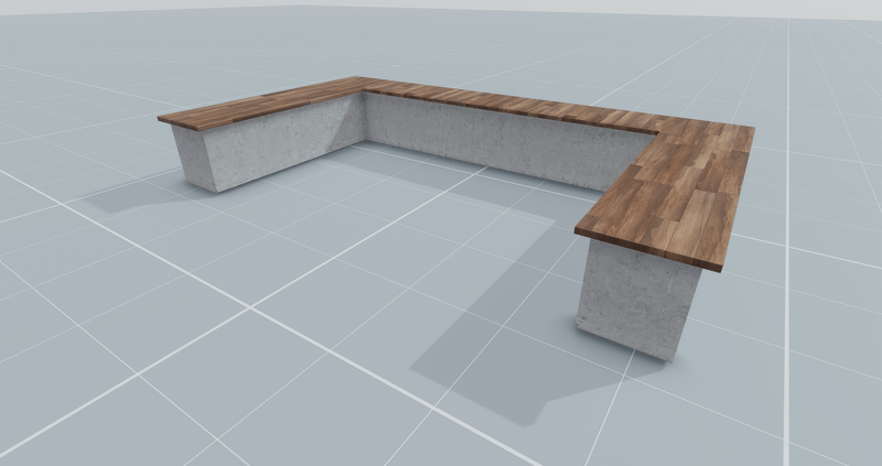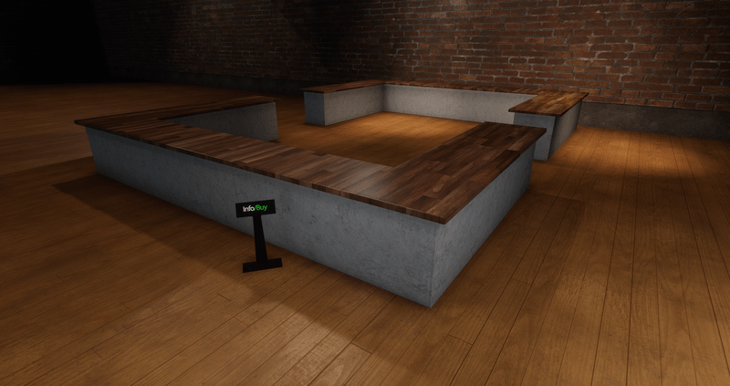 This U-Shape counter/bar features a wood parquet counter top with a concrete base. Great for store displays, shops, buffets, bars and special events. ⚬ Beveled edge design ⚬ Size 6.7m x 3.85m x .96m (default scale of 1) ⚬ Concrete base with Wood Parquet Top ⚬ No Material Editing Permissions (all other Editable Properties are Enabled) There's a Full Mod(ification) pack available if you desire Material Editing. https://store.sansar.com/listings/86dd6dd6-f962-413e-9fc1-c24e674575ee/u-shape-counterbar---full-mod-2-pack