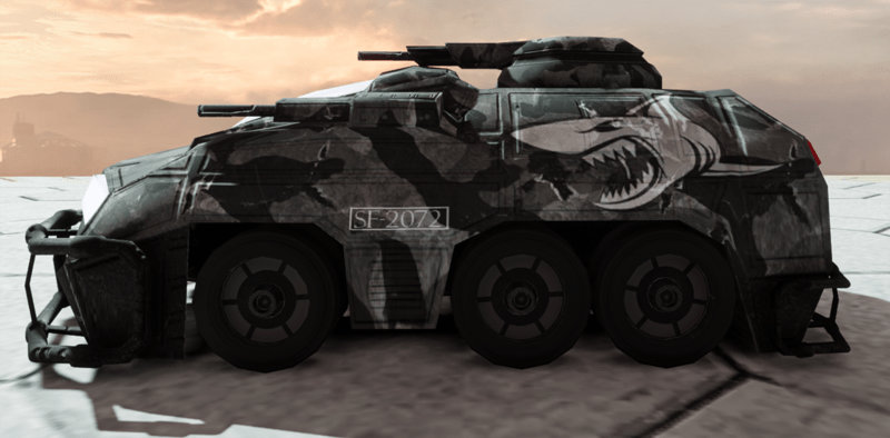 Armored Assault Vehicle Snow Camo is a game ready object with mult parts. All pieces are separated and u can configure it as well.