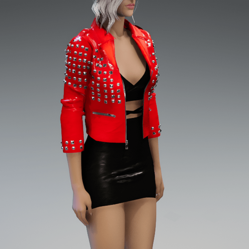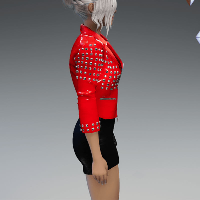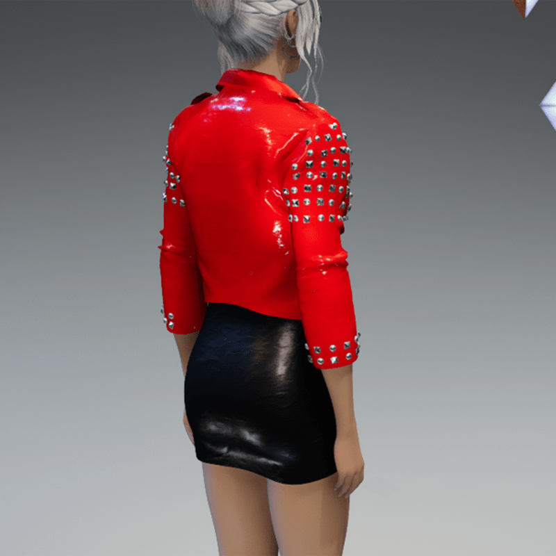 This leather jacket comes with a lot of rivets. You can also find the dress in my store. And please remember to remove your hair before adjusting the jacket. otherwise there will be problems with the collar. Enjoy! <3