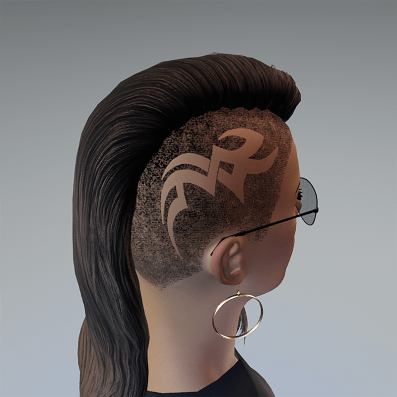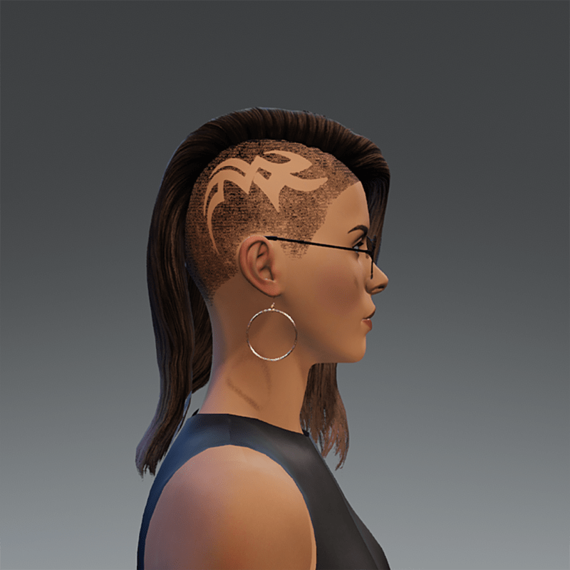 Hair shaved on one side, with tribal effect shaving Tintable in game. Please rate this item