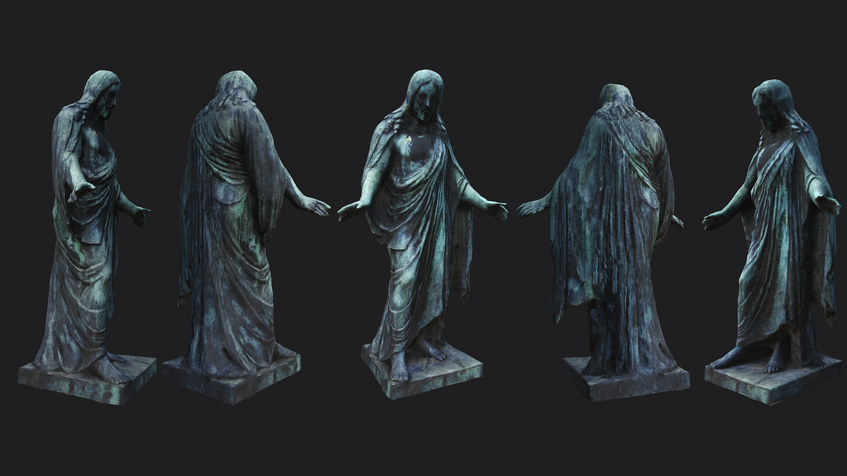 Very Detailed Photogrammetry Scanned Jesus Statue, Retopologized to Low Poly, with PBR Textures, perfect for Exterior Landscape Decoration in any environment The model was created from photogrammetry