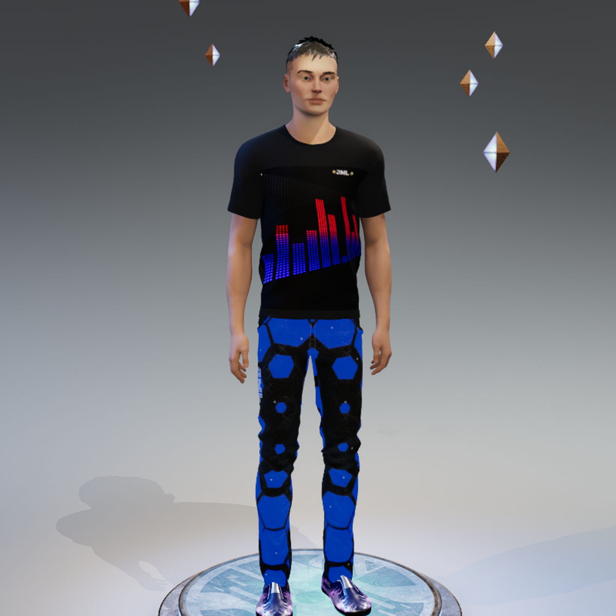 UNISEX_ PANTS_ HEXAGON BLUE_ ANIMATED_ EMISSIVE_